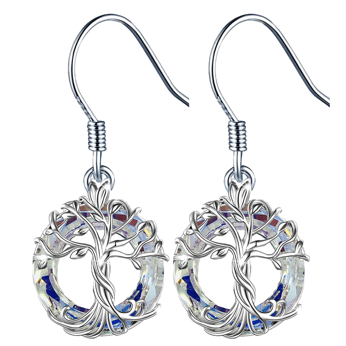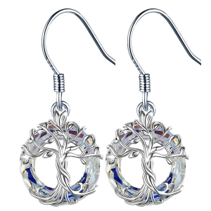 SREBRNE KOLCZYKI HAKI DRZEWO ŻYCIA SREBRO 925 CRYSTAL AB