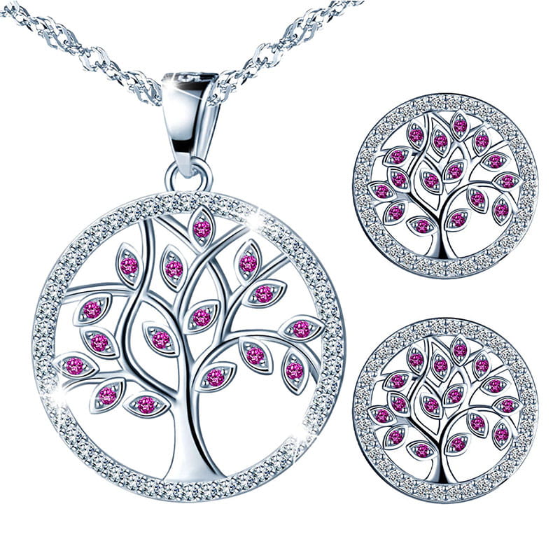 Zestaw Biżuterii "Drzewo Szczęścia" z Kryształami Fuchsia - Srebro 925
