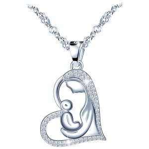Srebrny Naszyjnik Wyjątkowe Serce Matka z Dzieckiem Srebro 925 - Prezent na Dzień Matki