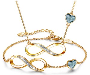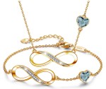 Wyjątkowy komplet biżuterii, składający się z naszyjnika i bransoletki, wykonany z srebra próby 925, symbolizuje wieczność, harmonię i miłość. Centralnym motywem jest znak nieskończoności, ozdobiony lśniącymi cyrkoniami, które dodają elegancji i blasku. Całość dopełnia subtelne serce, wprowadzając romantyczny akcent. Idealny prezent, który podkreśla trwałość relacji i piękno wspólnych chwil. Uniwersalny styl sprawia, że zestaw doskonale pasuje zarówno do codziennych, jak i bardziej formalnych stylizacji.