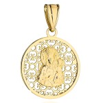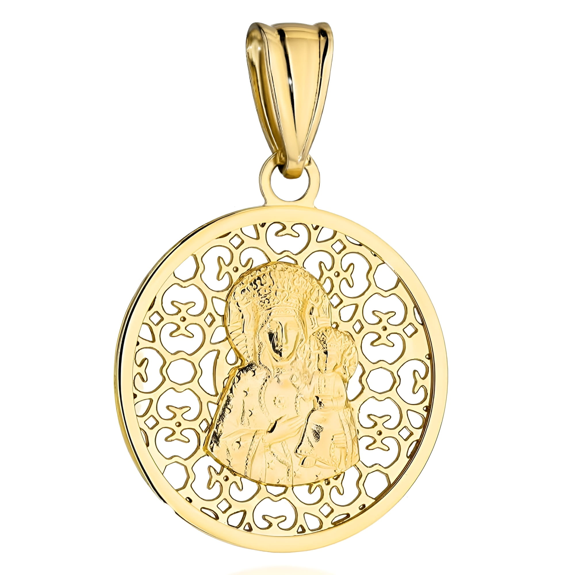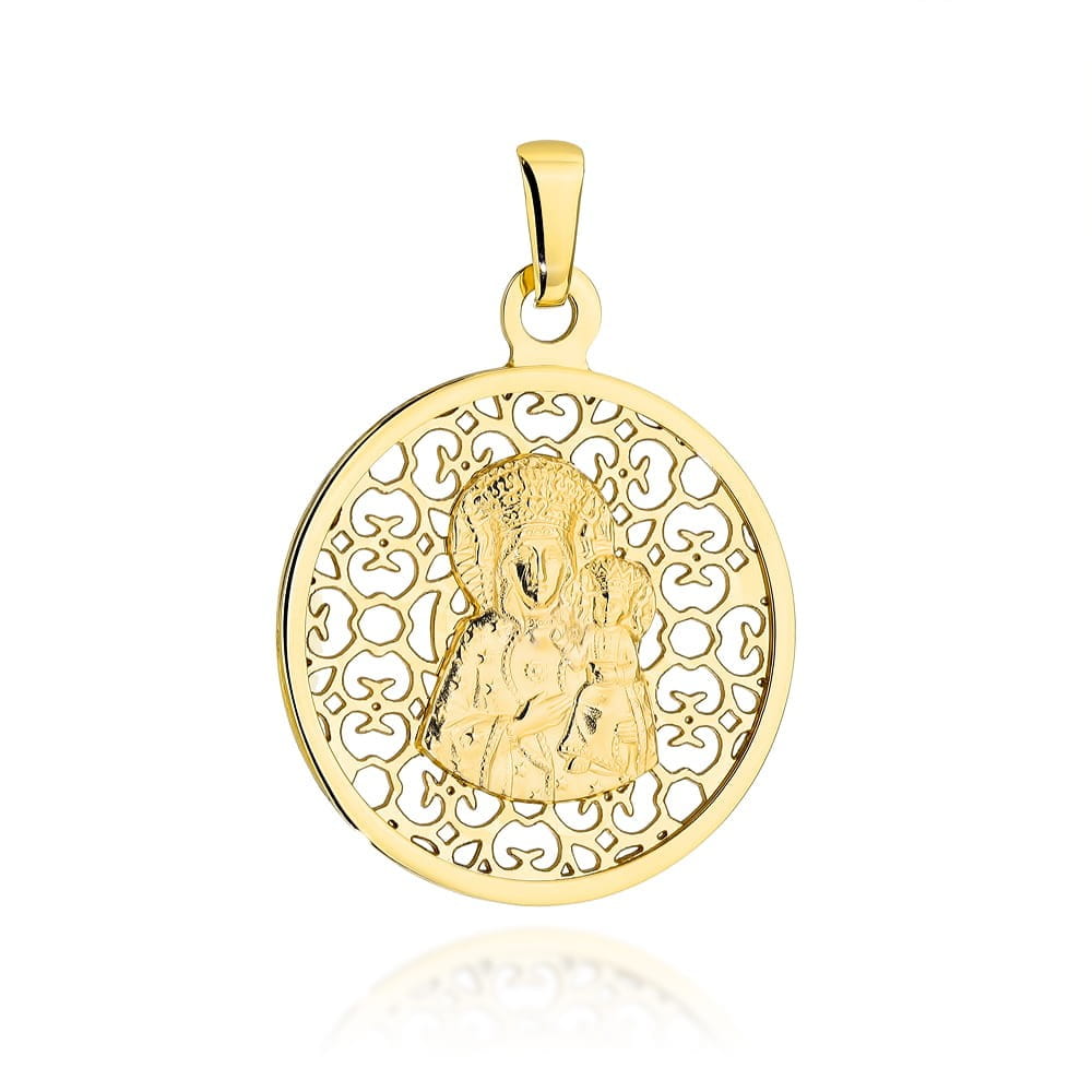 Złoty Medalik Matka Boska Częstochowska w Zdobionym Ażurowym Kole - Złoto 585