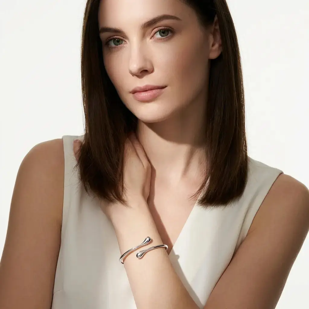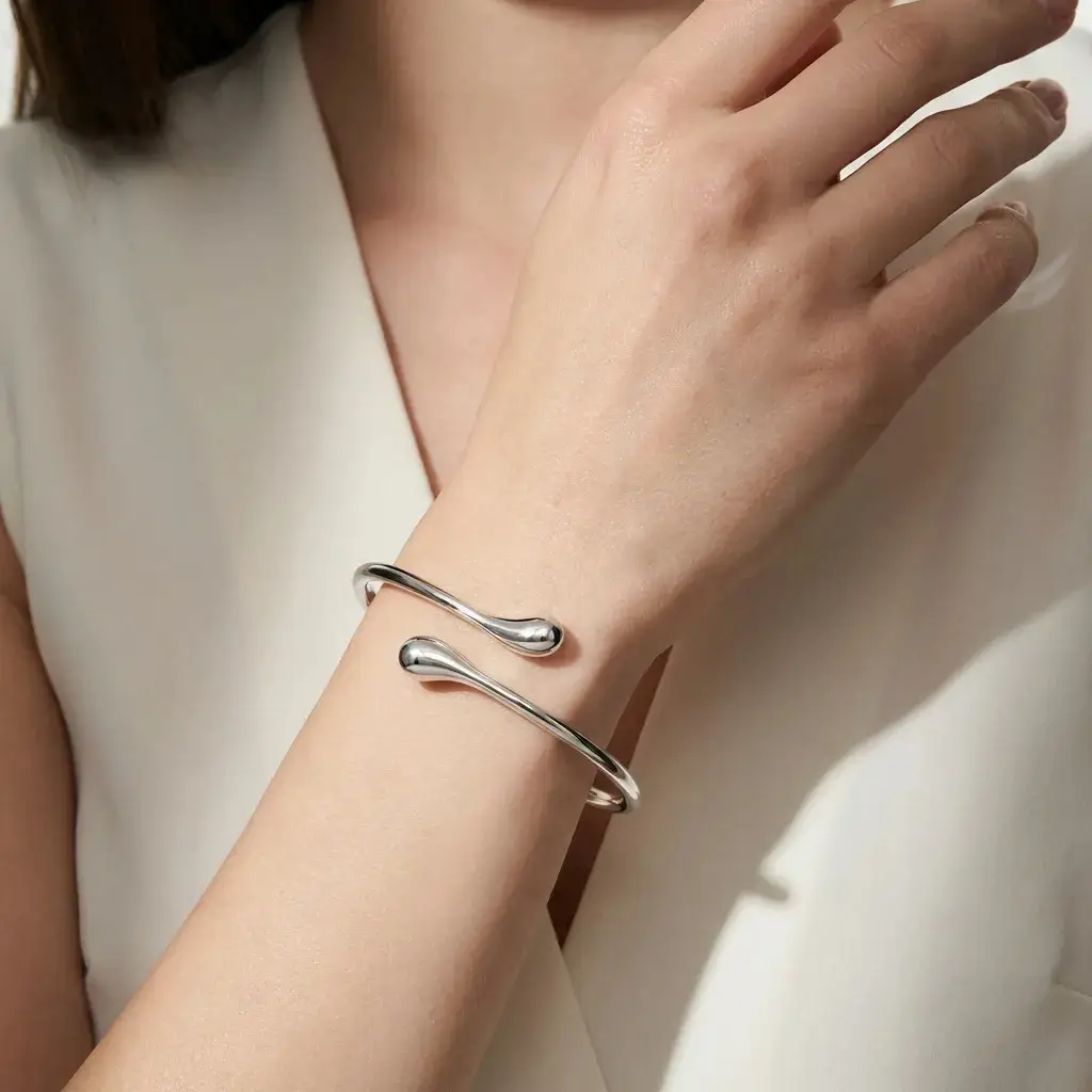 Prosta, płynna forma o subtelnym, organicznym kształcie sprawia, że biżuteria wygląda lekko, ale jednocześnie bardzo stylowo.