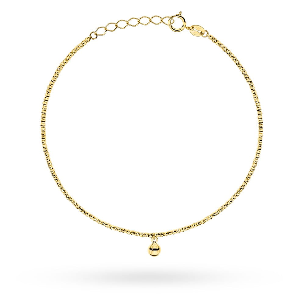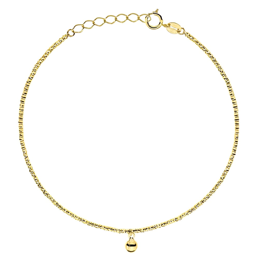 Bransoletka Złota z Diamentowanymi Kuleczkami i Wiszącą Gładką Kulką – Złoto 585