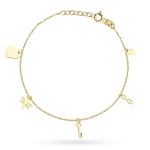 Bransoletka na nogę z elementami serce, ważka, kluczyk, nieskończoność i romb