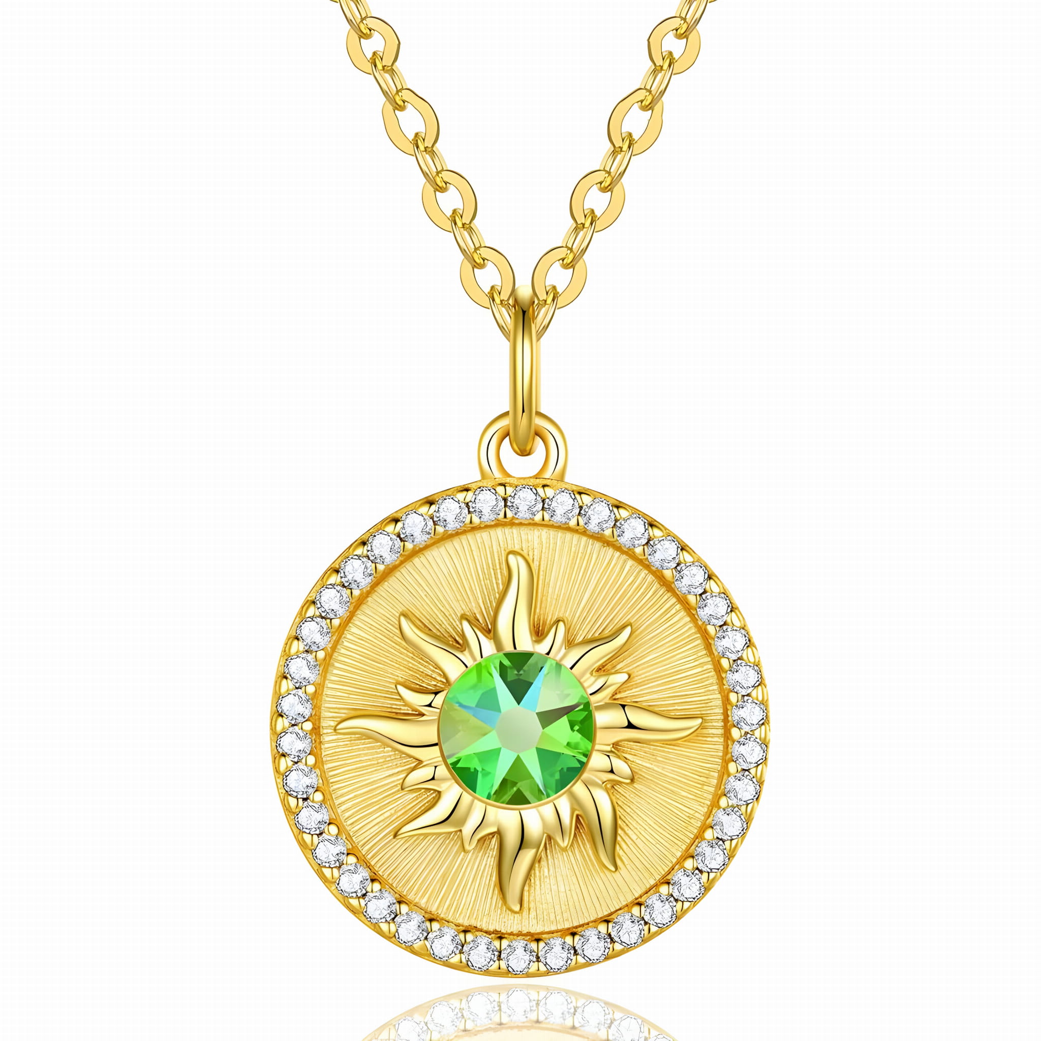 Prezentujemy wyjątkowy naszyjnik ze srebra próby 925, pokryty warstwą 24-karatowego złota, który zachwyca blaskiem i elegancją. Ozdobiony markowymi kryształami i cyrkoniami, przyciąga uwagę i dodaje stylu każdej stylizacji. Centralnym punktem zawieszki jest promieniste słońce z osadzonym kryształem w środku, symbolizujące ciepło, energię i radość. To doskonały pomysł na prezent, który sprawdzi się na urodziny, rocznice, Walentynki, Dzień Matki czy ślub.