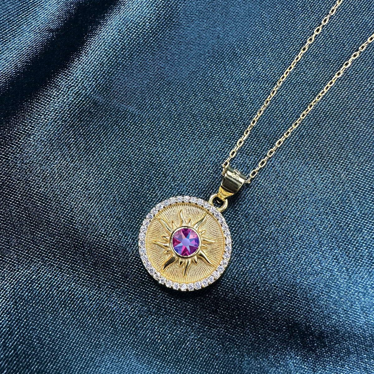 Prezentujemy wyjątkowy naszyjnik ze srebra próby 925, pokryty warstwą 24-karatowego złota, który zachwyca blaskiem i elegancją. Ozdobiony markowymi kryształami i cyrkoniami, przyciąga uwagę i dodaje stylu każdej stylizacji. Centralnym punktem zawieszki jest promieniste słońce z osadzonym kryształem w środku, symbolizujące ciepło, energię i radość. To doskonały pomysł na prezent, który sprawdzi się na urodziny, rocznice, Walentynki, Dzień Matki czy ślub.