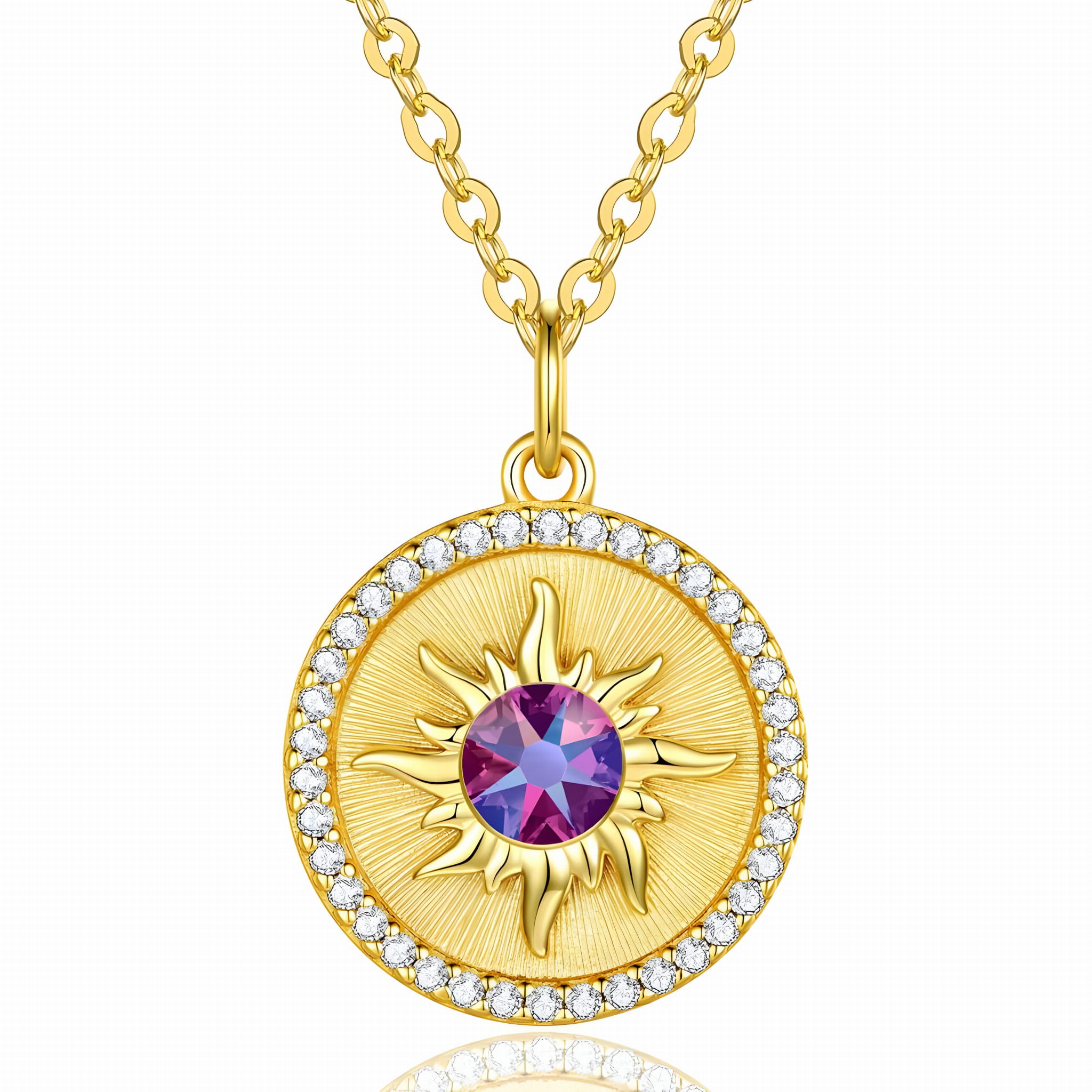 Pozłacany Naszyjnik Słońce z Kryształem i Cyrkoniami - Srebro 925 Pozłacane 24-karatowym Złotem