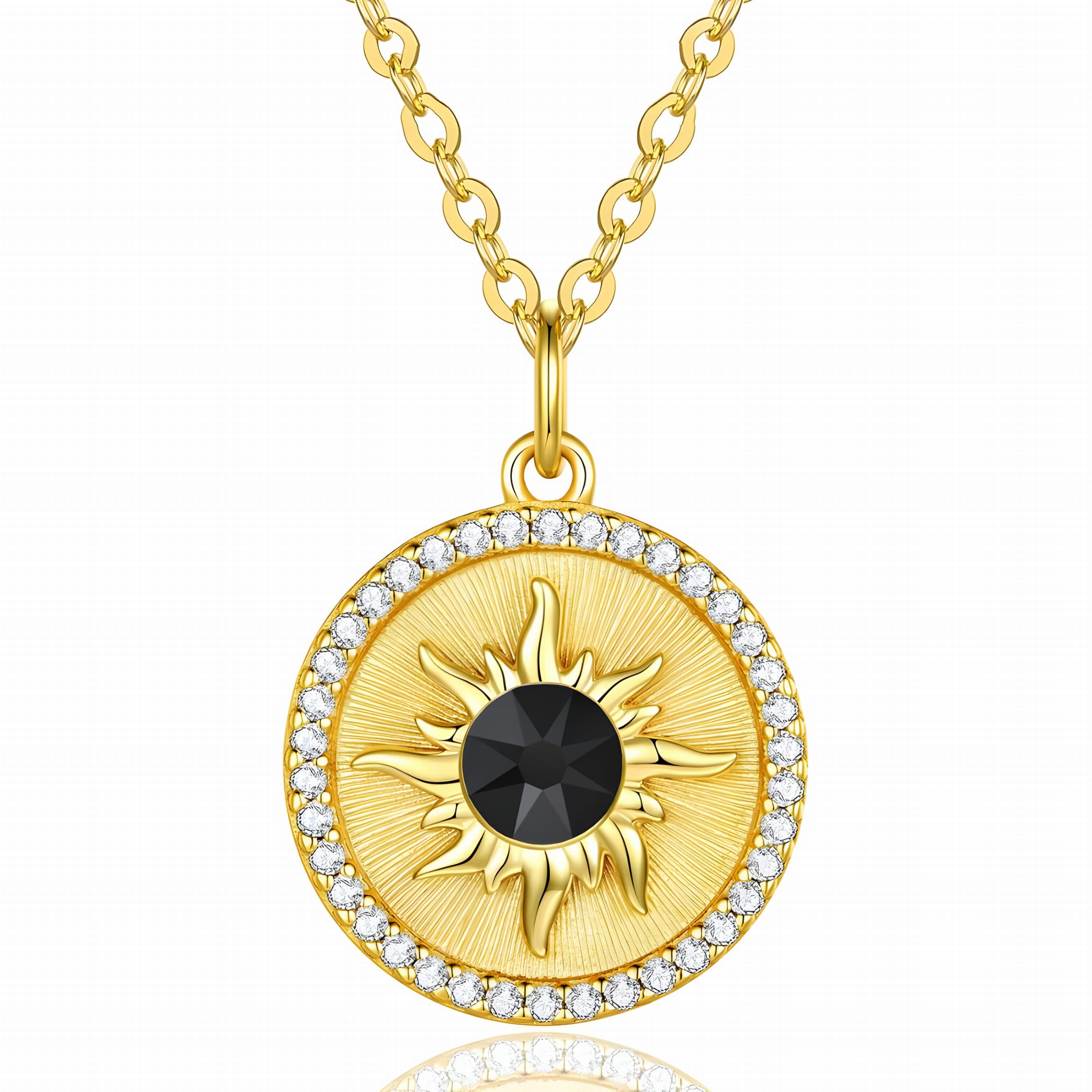 Prezentujemy wyjątkowy naszyjnik ze srebra próby 925, pokryty warstwą 24-karatowego złota, który zachwyca blaskiem i elegancją. Ozdobiony markowymi kryształami i cyrkoniami, przyciąga uwagę i dodaje stylu każdej stylizacji. Centralnym punktem zawieszki jest promieniste słońce z osadzonym kryształem w środku, symbolizujące ciepło, energię i radość. To doskonały pomysł na prezent, który sprawdzi się na urodziny, rocznice, Walentynki, Dzień Matki czy ślub.