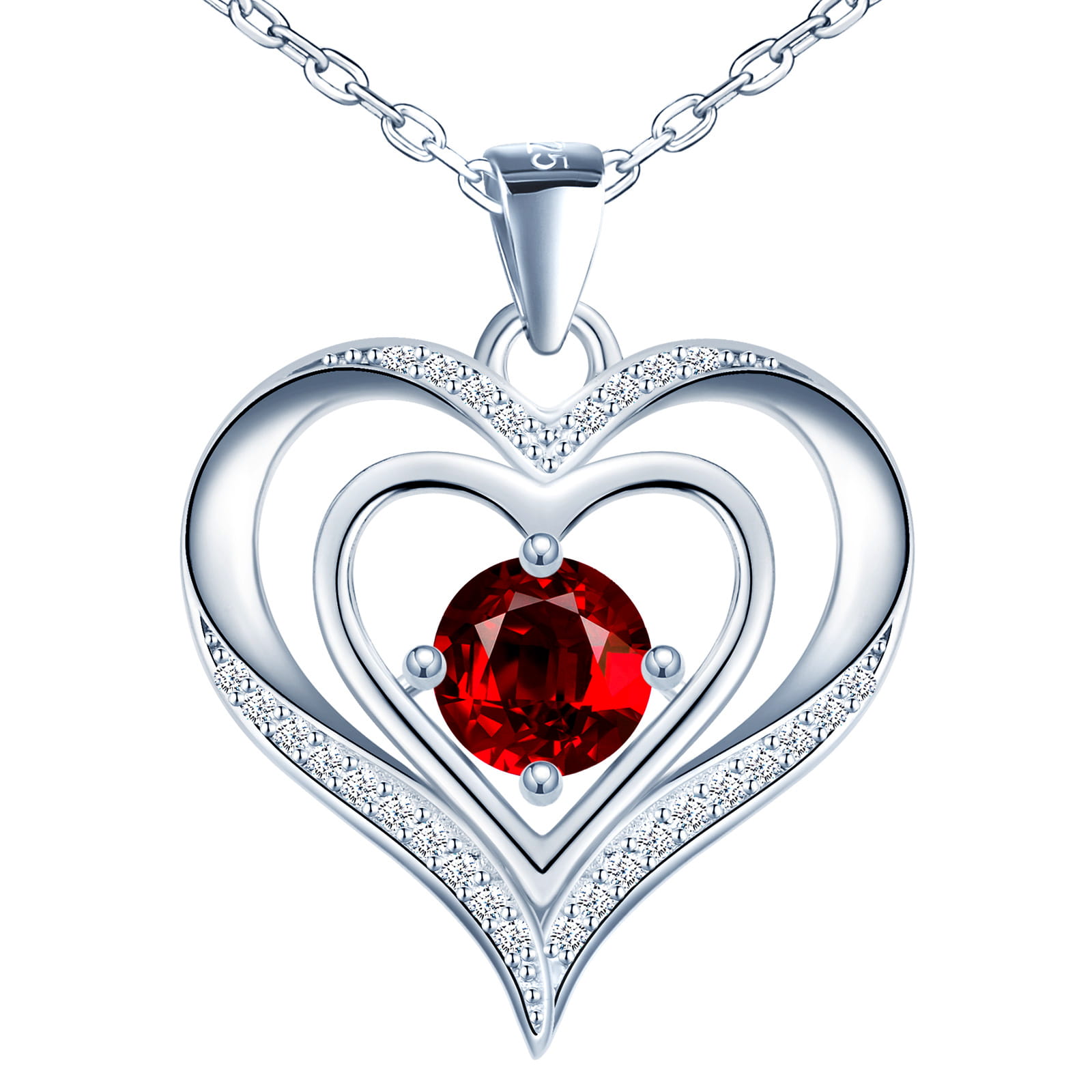 Wzbogać swoją kolekcję biżuterii o srebrny naszyjnik z sercem, który emanuje elegancją i romantyzmem. Centralnym punktem wisiorka jest czerwony kryształ, symbolizujący spokój i harmonię. Podwójne serce otoczone błyszczącymi cyrkoniami nadaje naszyjnikowi subtelny blask, czyniąc go idealnym dodatkiem zarówno do codziennych, jak i bardziej formalnych stylizacji.