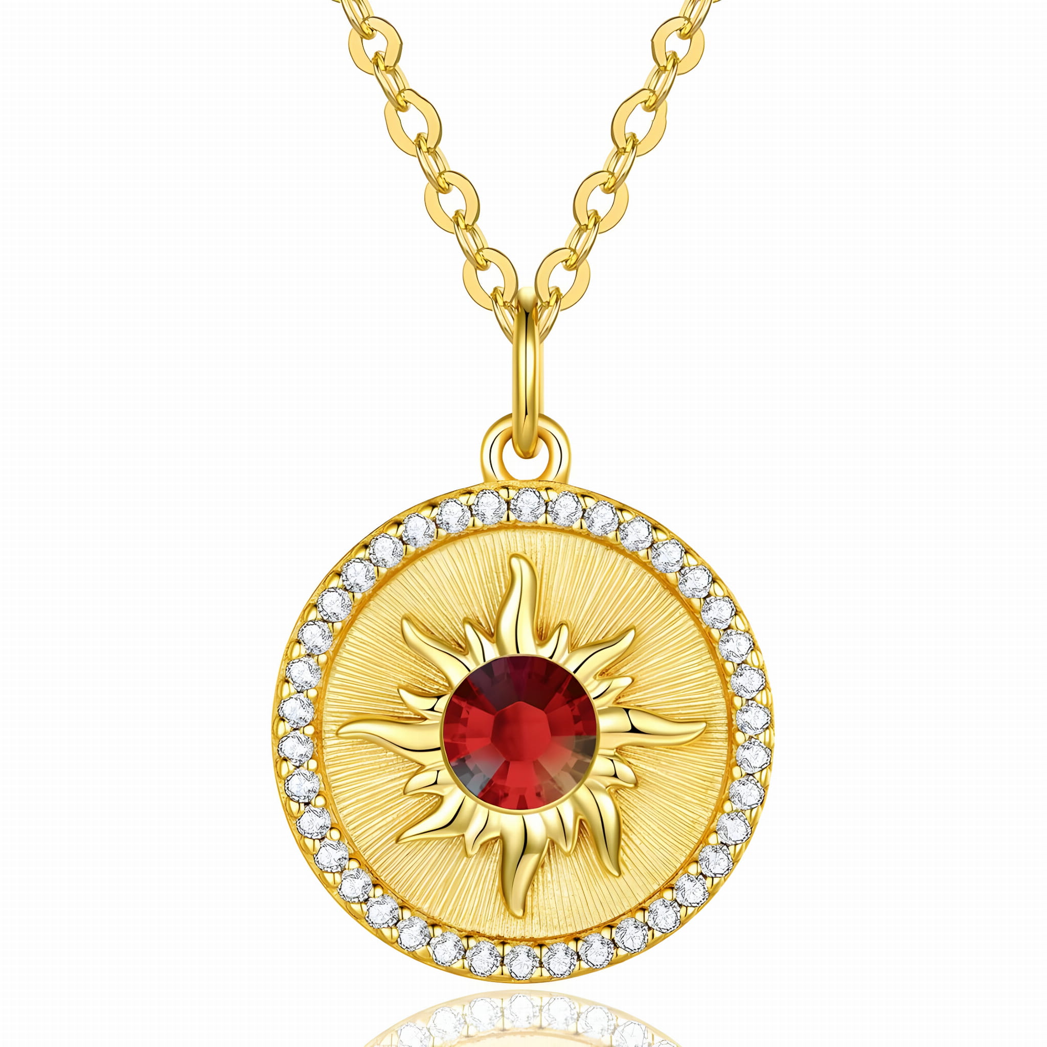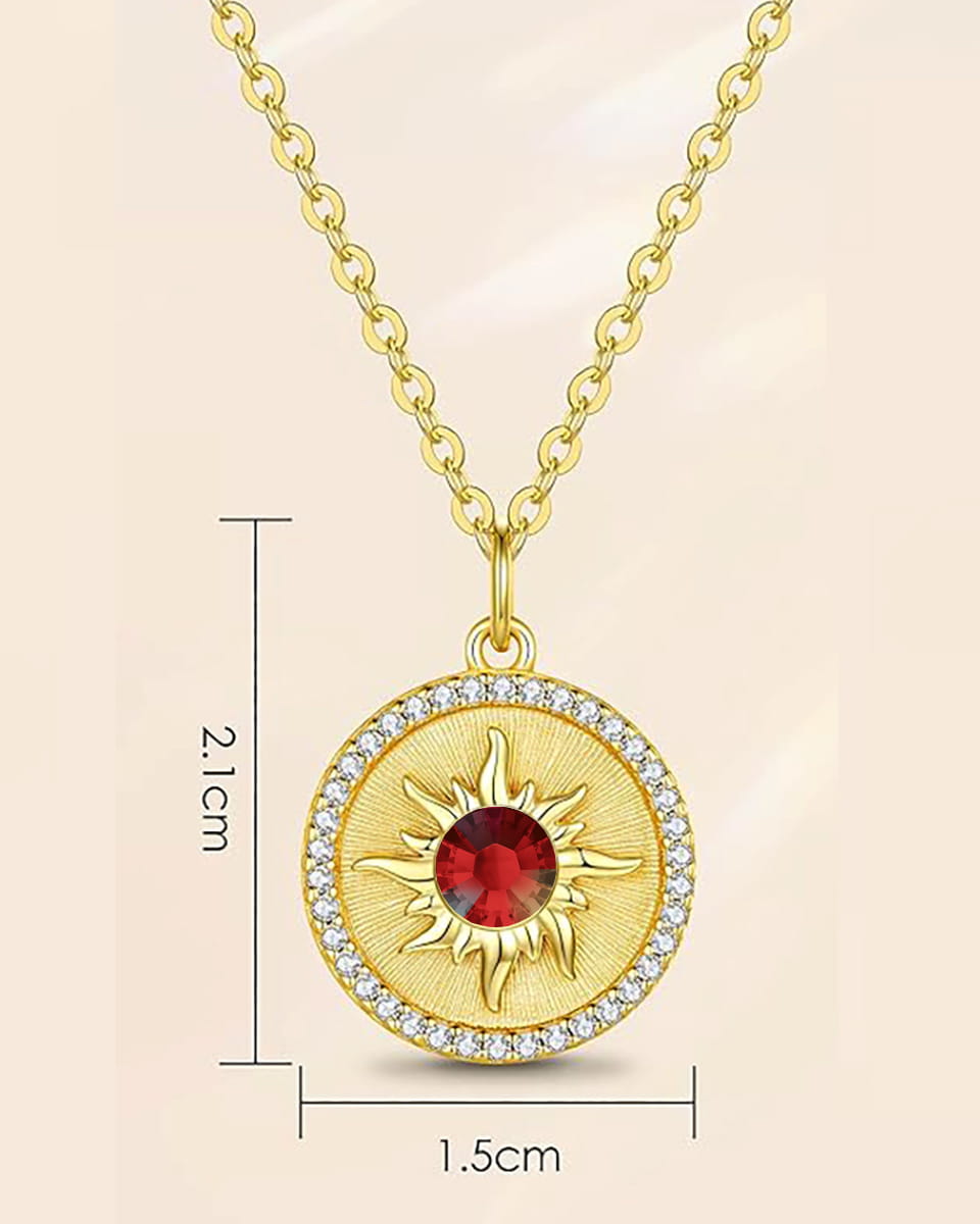 Prezentujemy wyjątkowy naszyjnik ze srebra próby 925, pokryty warstwą 24-karatowego złota, który zachwyca blaskiem i elegancją. Ozdobiony markowymi kryształami i cyrkoniami, przyciąga uwagę i dodaje stylu każdej stylizacji. Centralnym punktem zawieszki jest promieniste słońce z osadzonym kryształem w środku, symbolizujące ciepło, energię i radość. To doskonały pomysł na prezent, który sprawdzi się na urodziny, rocznice, Walentynki, Dzień Matki czy ślub.