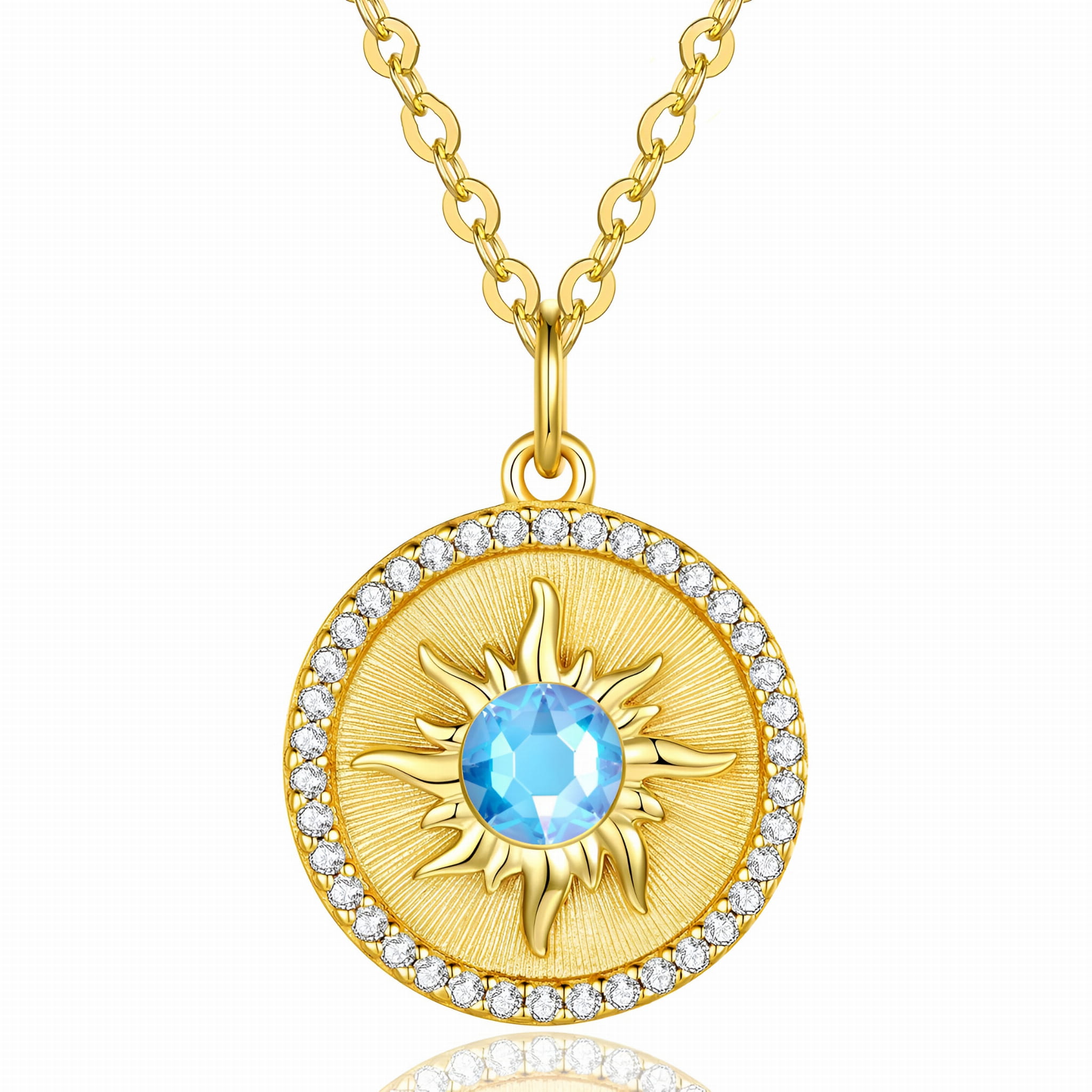 Prezentujemy wyjątkowy naszyjnik ze srebra próby 925, pokryty warstwą 24-karatowego złota, który zachwyca blaskiem i elegancją. Ozdobiony markowymi kryształami i cyrkoniami, przyciąga uwagę i dodaje stylu każdej stylizacji. Centralnym punktem zawieszki jest promieniste słońce z osadzonym kryształem w środku, symbolizujące ciepło, energię i radość. To doskonały pomysł na prezent, który sprawdzi się na urodziny, rocznice, Walentynki, Dzień Matki czy ślub.