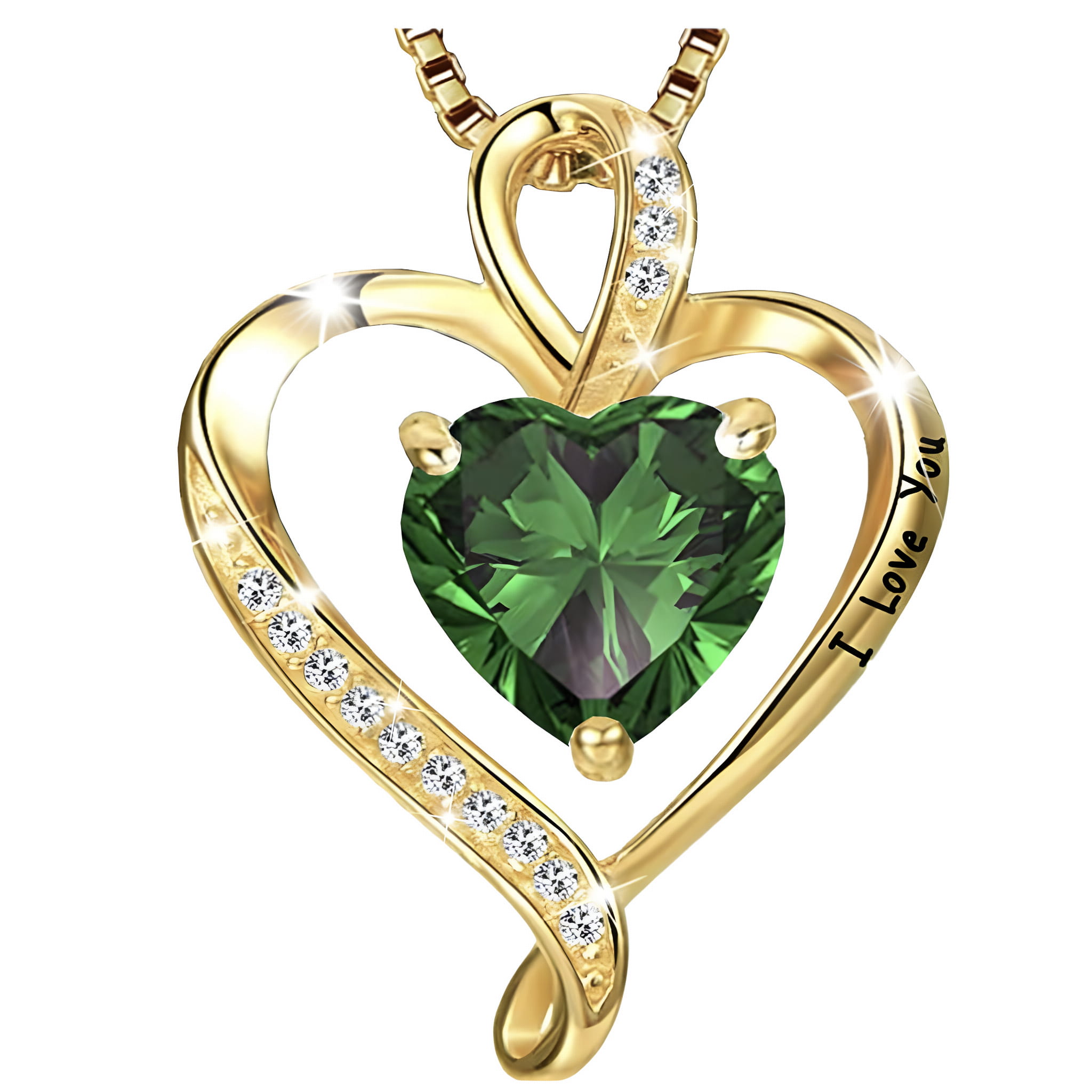 Pozłacany Naszyjnik Serce z Kamieniem w Kolorze Szmaragdu i Grawerowanym Napisem "I Love You"