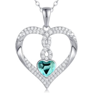 Srebrny Wisiorek Serce z Niebieskim Kryształem - Elegancki Damski Naszyjnik - Srebro 925