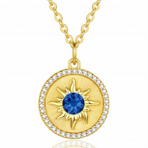 Stylowy Naszyjnik Słońce z Kryształem i Cyrkoniami - Srebro 925 Pozłacane 24-karatowym Złotem
