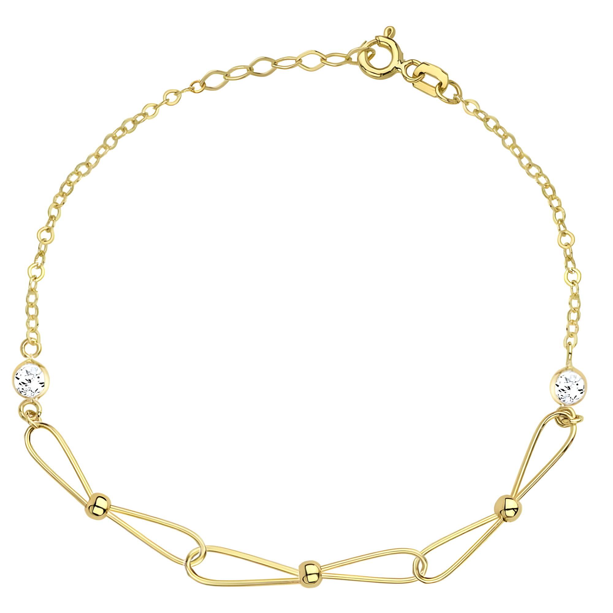 Złota Bransoletka Połączone Kulki i Okrągłe Białe Cyrkonie - Złoto 585