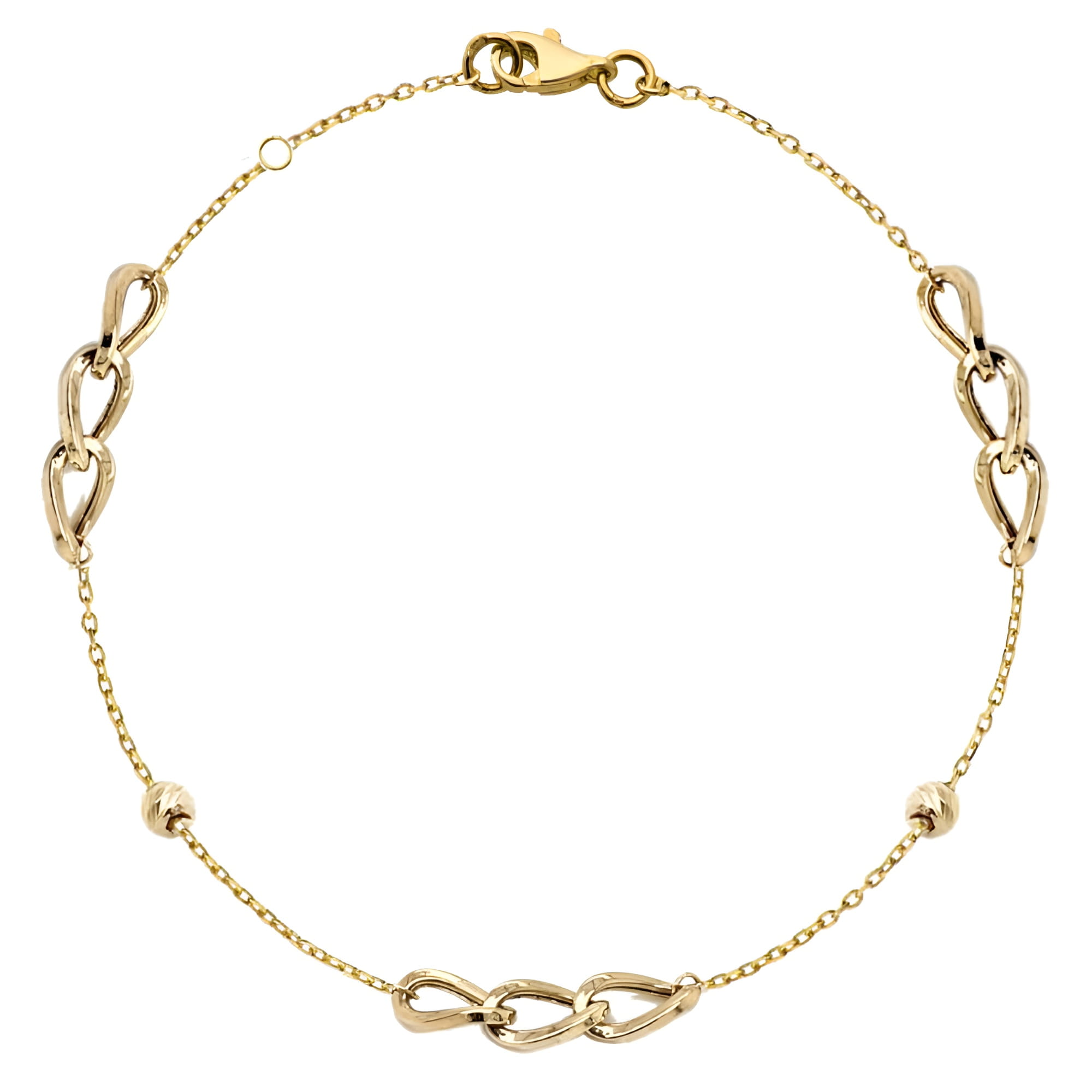 Złota Bransoletka Trzy Elementy Łańcucha na Łańcuszku- Złoto 585 - Prezent na Urodziny