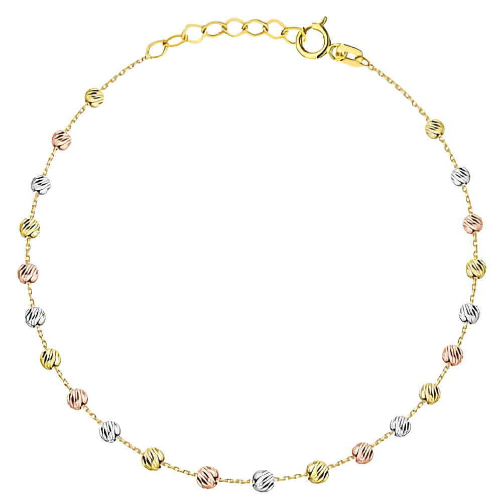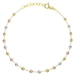 Złota Bransoletka w Trzech Kolorach Złota z Diamentowanymi Kuleczkami – Złoto 585