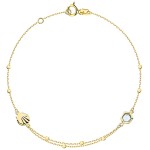 Złota Bransoletka z Błękitnym Kamieniem, Muszlą i Kulkami Party - Złoto 585