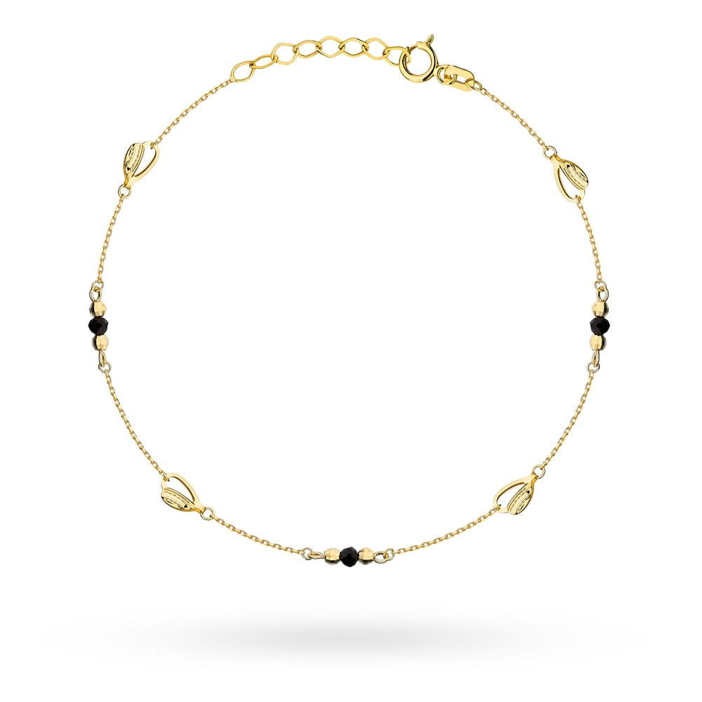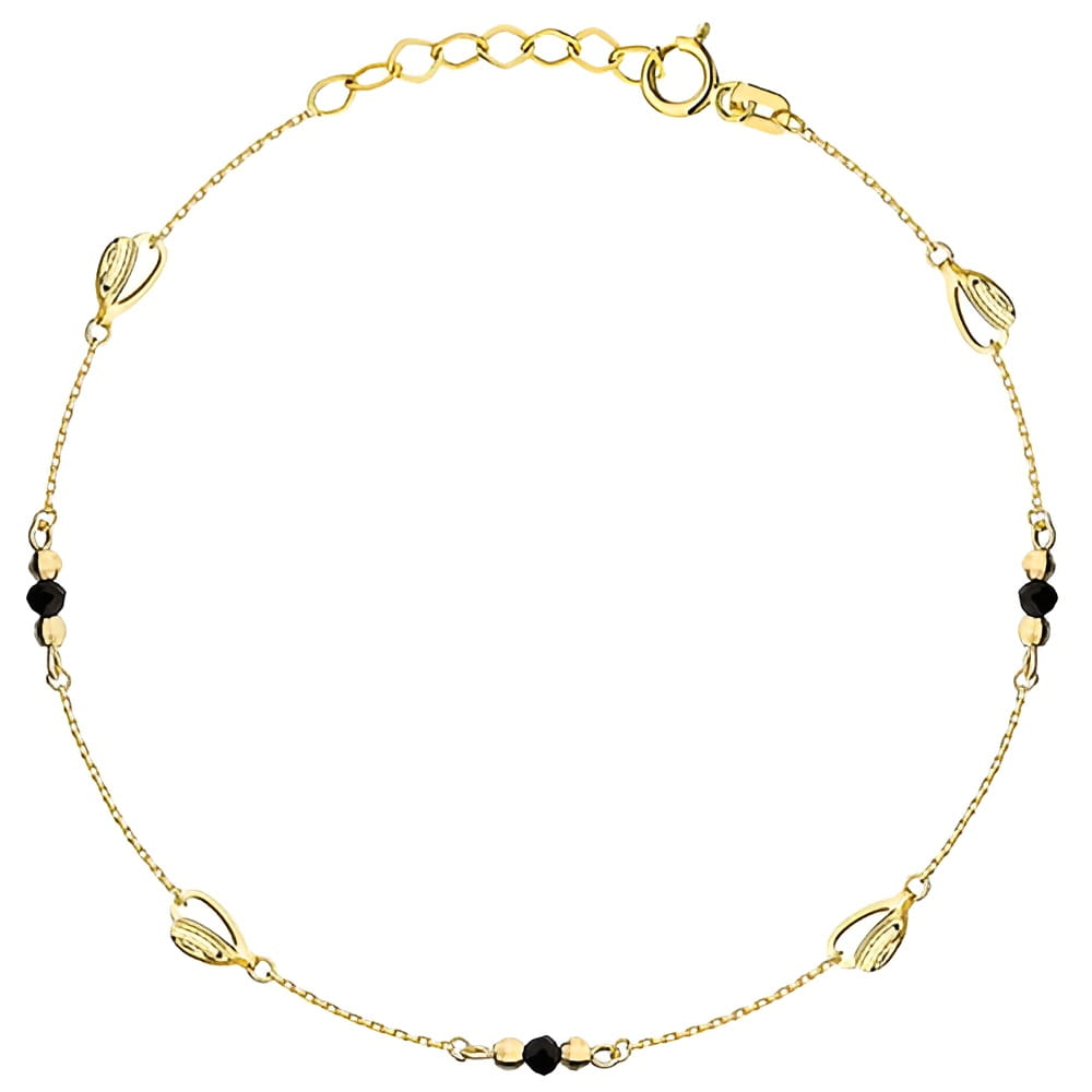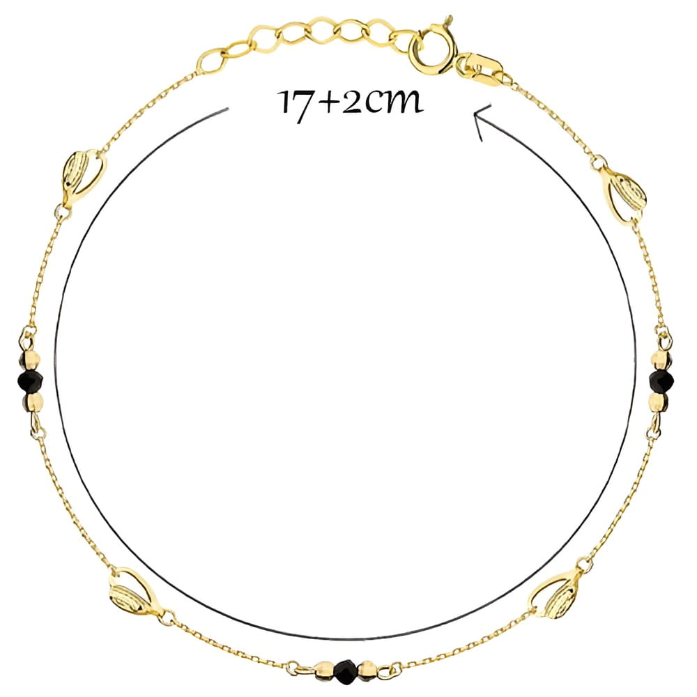 Złota Bransoletka z Czarnymi Kamieniami i Kulkami Party - Złoto 585