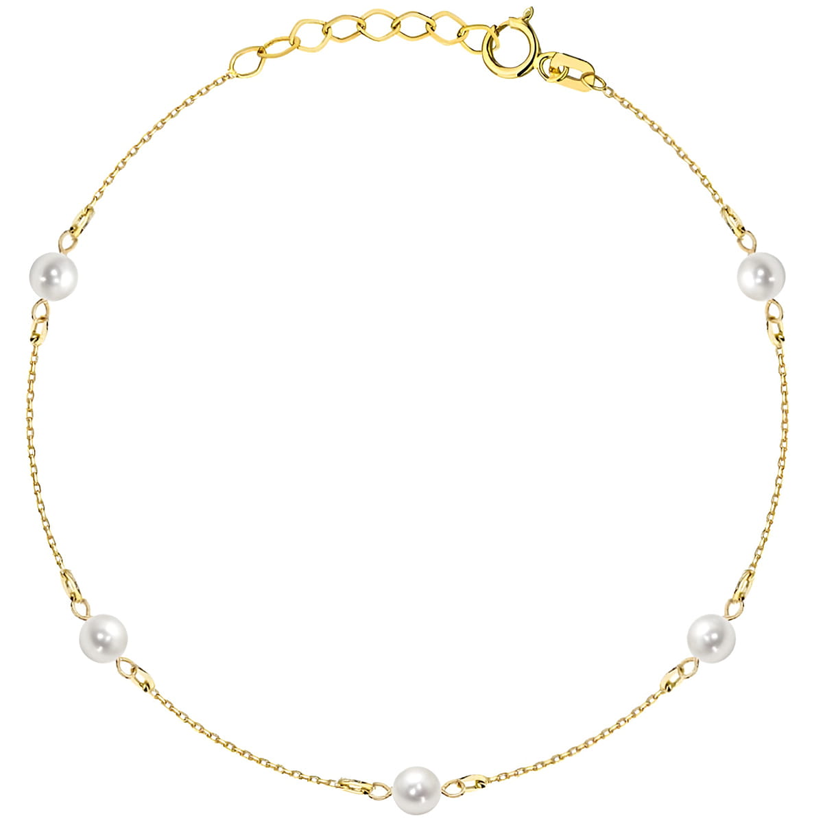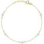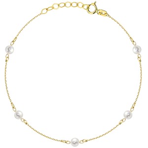 Złota Bransoletka z Pięcioma Perłami na Łańcuszku - Zloto 585