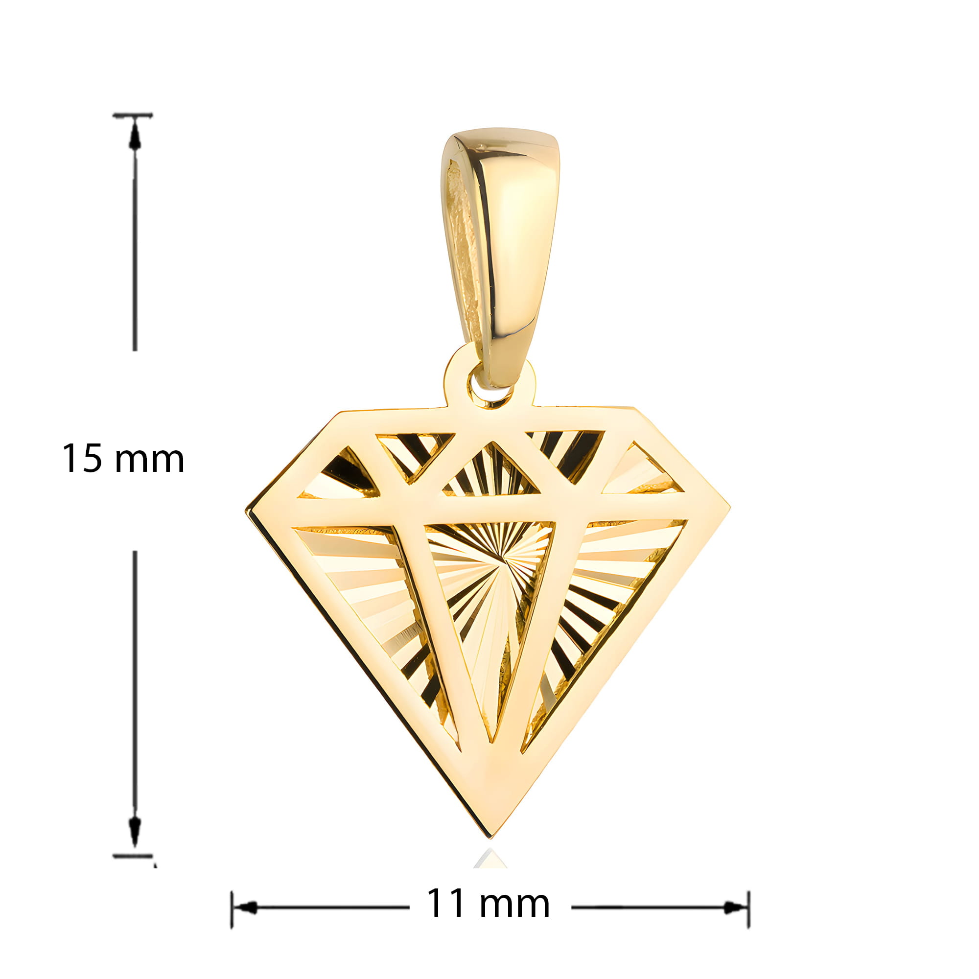 Elegancka złota zawieszka diamentowana w kształcie diamentu to połączenie luksusu i nowoczesnego stylu. Wykonana z najwyższej jakości złota próby 585, zachwyca precyzyjnym wykończeniem i wyjątkową formą, która przyciąga uwagę. To uniwersalna biżuteria, która pasuje zarówno do codziennych stylizacji, jak i eleganckich kreacji. Idealny wybór na prezent dla wyjątkowej osoby, symbolizujący blask i ponadczasową elegancję.