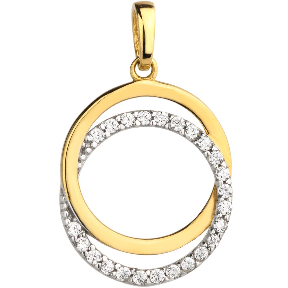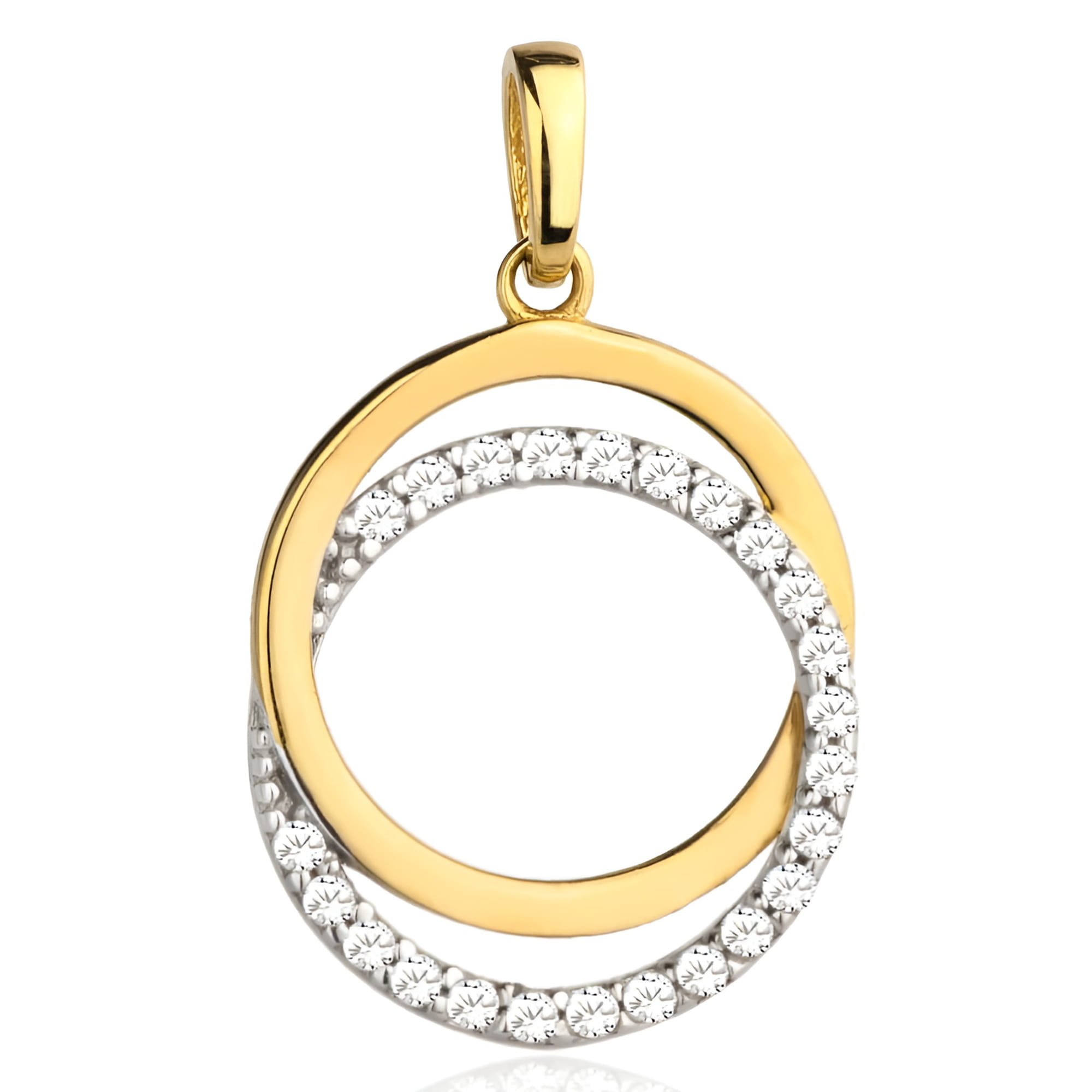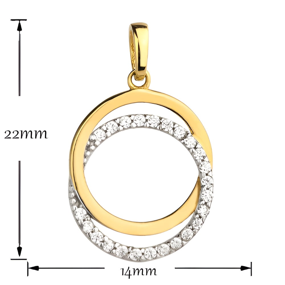 Złota Zawieszka Dwa Okręgi Ze Złota i z Cyrkonii