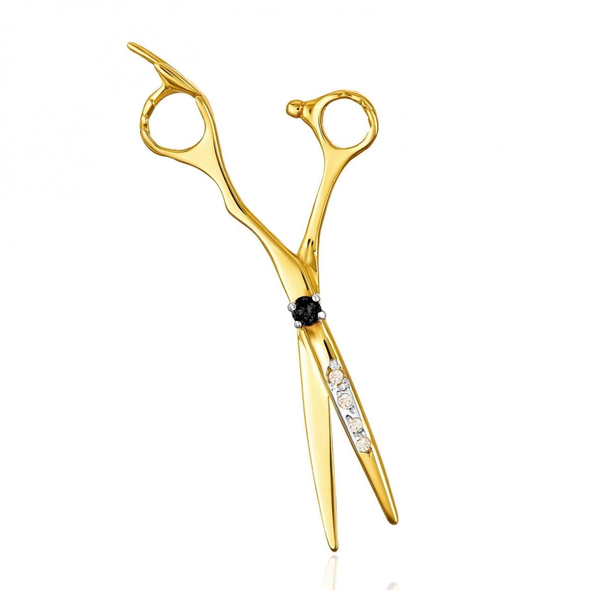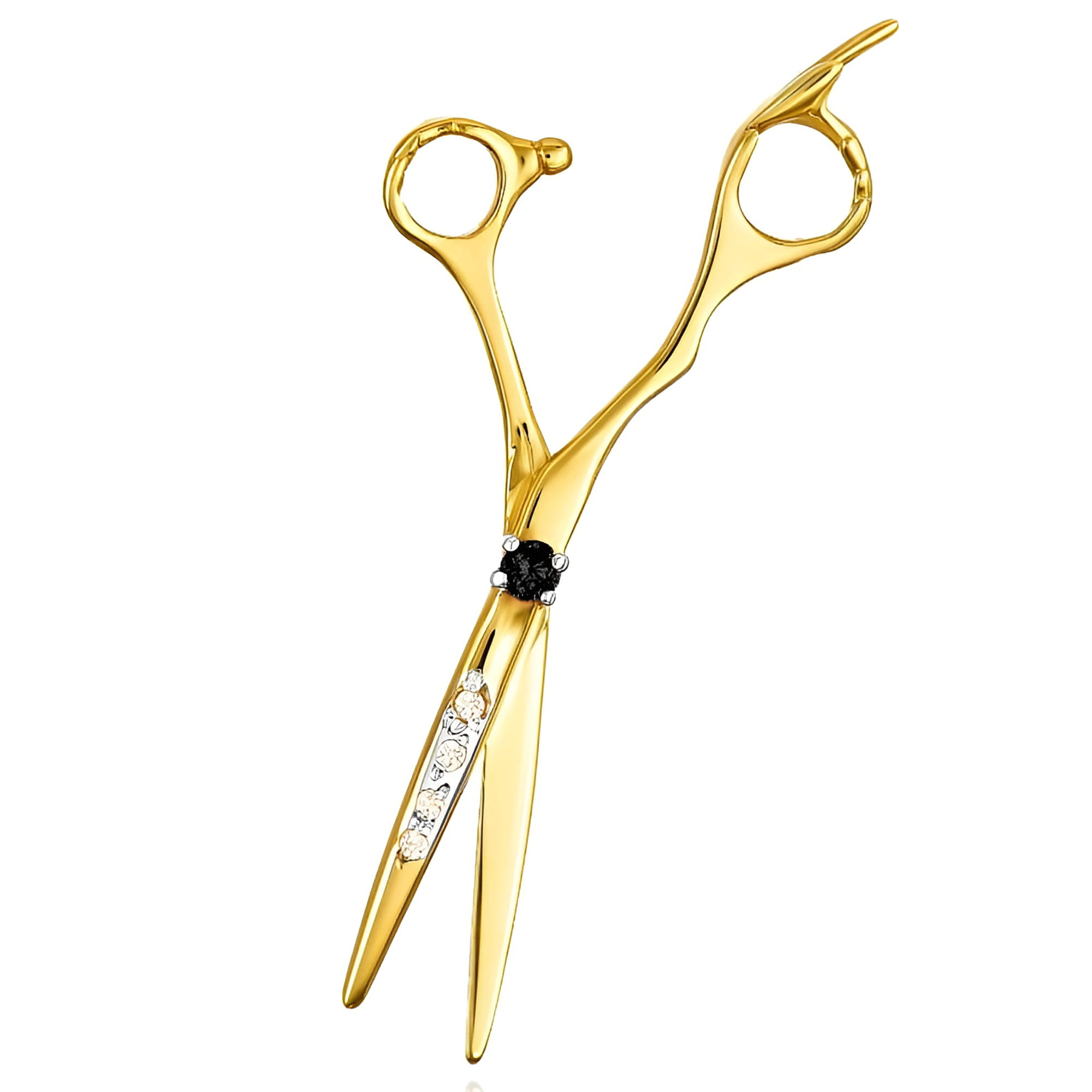 Złota Zawieszka Nożyczki Zdobione Cyrkoniami i Czarnym Kamieniem