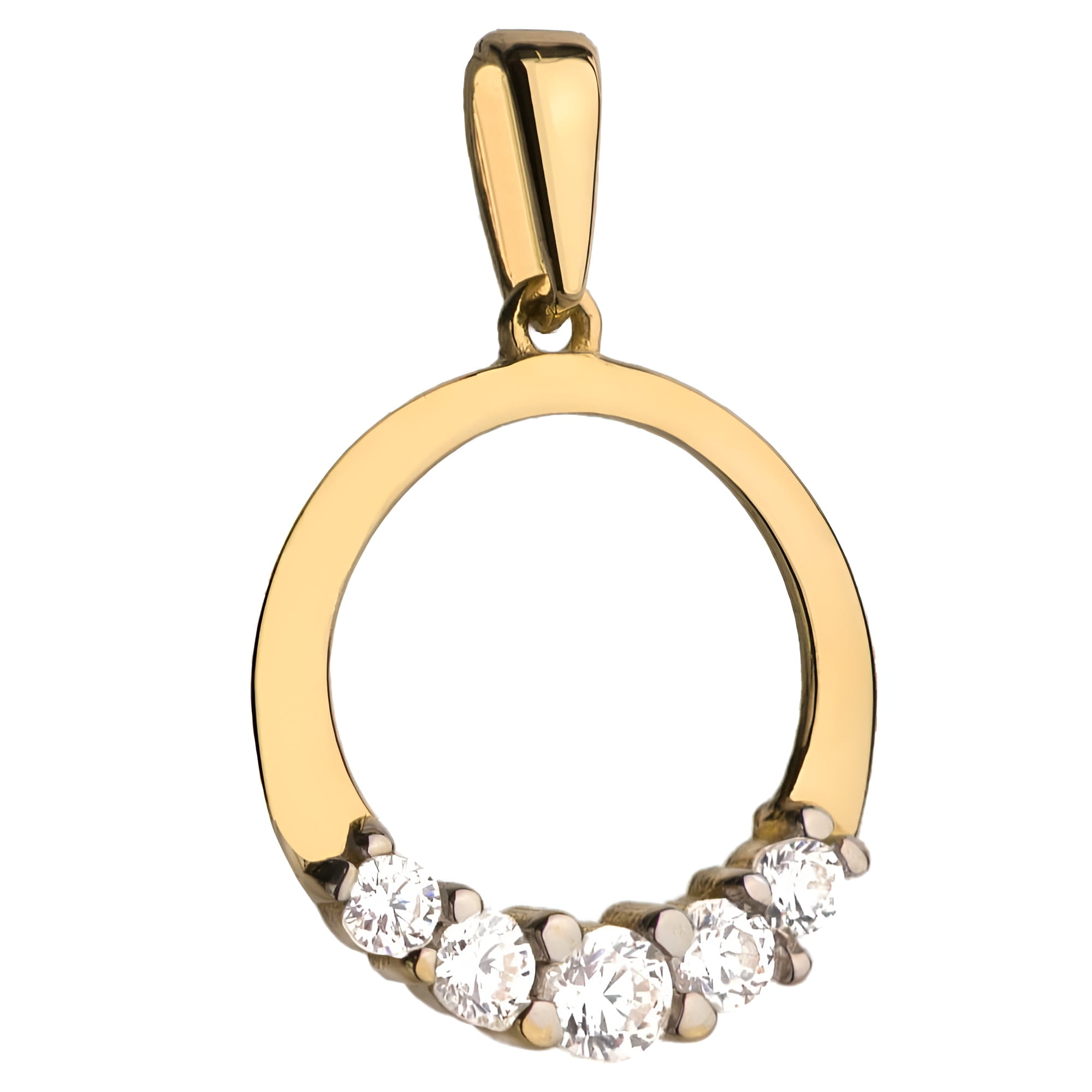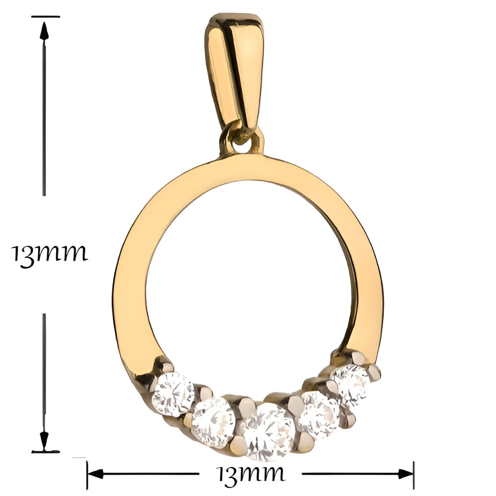 Złota Zawieszka Ring z Cyrkoniami na Dole- Złoto 585 - Prezent na Rocznice Dzień Matki