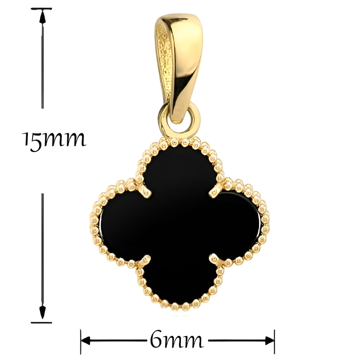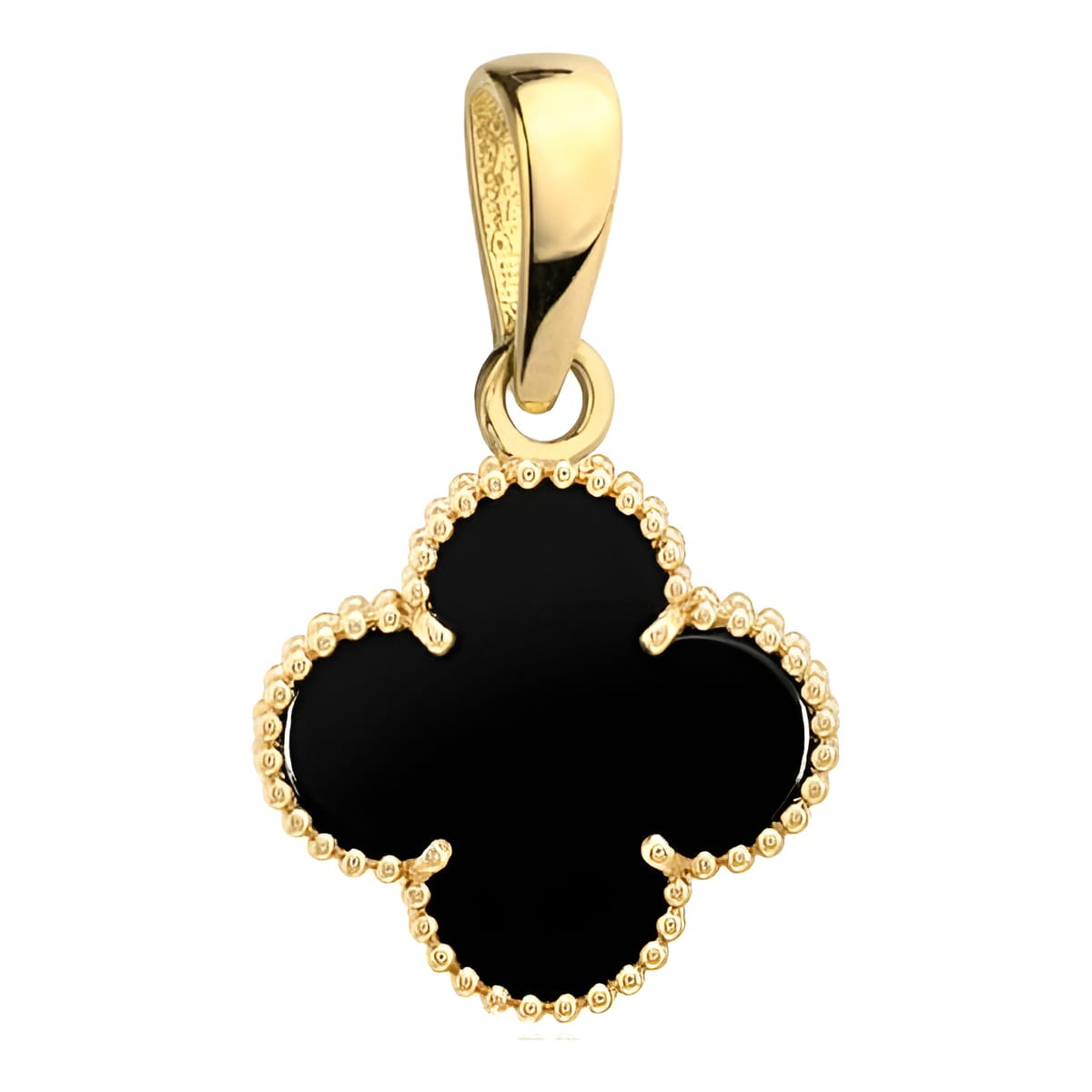 Złota Zawieszka z Czarną Koniczynką Onyks 6mm - Złoto 585 - Ekskluzywna Damska Biżuteria ze Złota