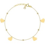 Złota pr. 585 Bransoletka na Nogę Wiszące Serduszka i Diamentowane Kulki - Złoto 585