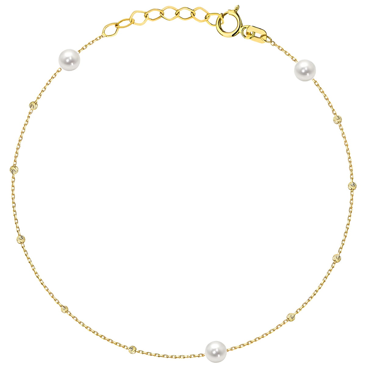 Złota pr. 585 Bransoletka z Delikatnymi Diamentowanymi Kuleczkami i Perłami - Złoto 585
