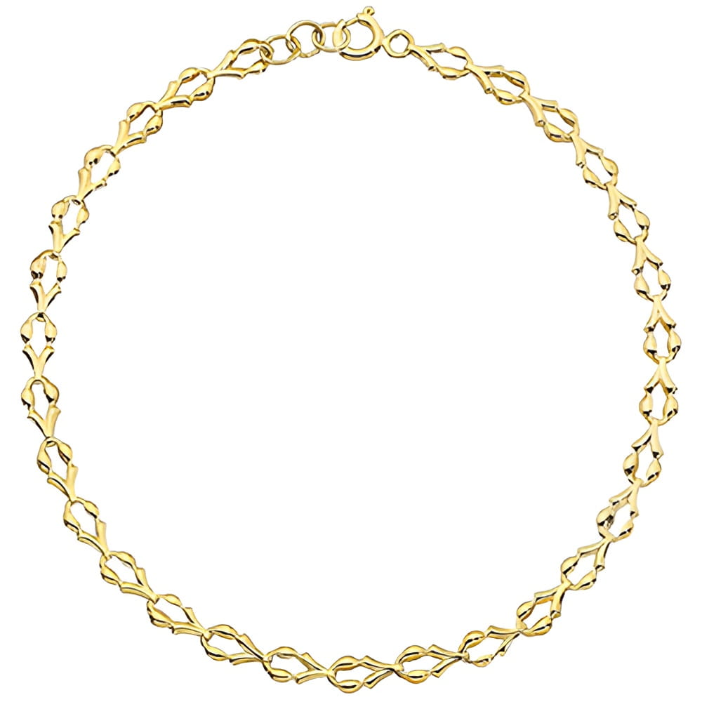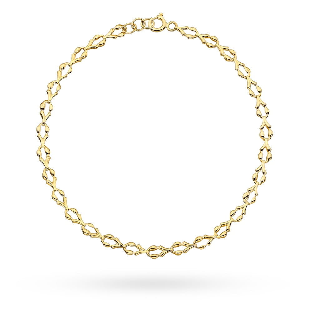 Bransoletka wykonana z złota 585 zachwyca oryginalnym splotem ogniw w formie przeplatających się, ażurowych łezek. To elegancka propozycja dla osób, które cenią wyraziste detale i klasyczne formy w nowoczesnym wydaniu. Bransoletka pięknie prezentuje się na nadgarstku, odbijając światło i przyciągając spojrzenia. Dzięki wygodnemu zapięciu zapewnia komfort noszenia każdego dnia. Doskonały wybór zarówno na prezent, jak i jako dodatek do codziennych lub bardziej odświętnych stylizacji. Postaw na jakość i trwałość, wybierając złoto 585.
