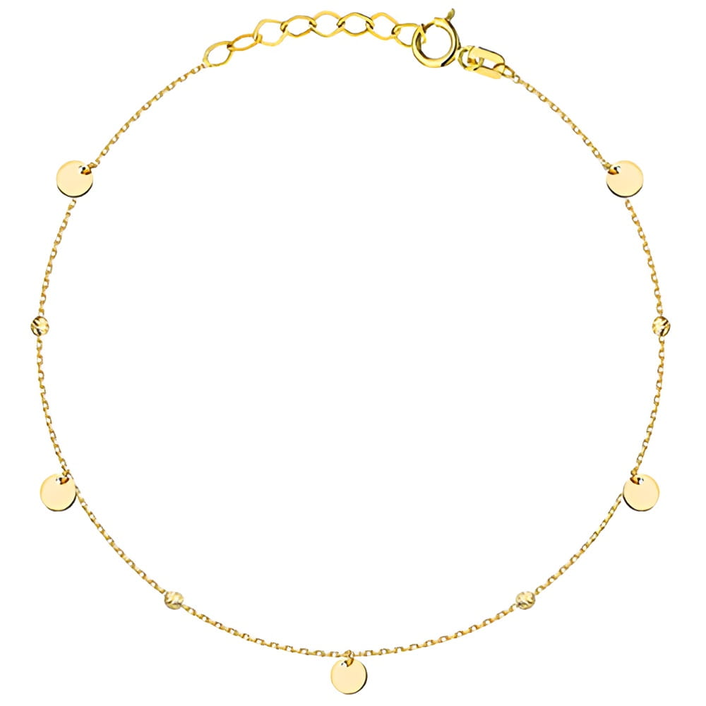 Złota pr.585 Bransoletka Pełne Kółka i Diamentowane Kulki - Złoto 585