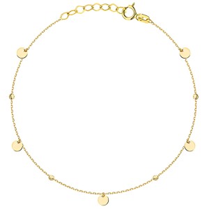 Złota bransoletka z delikatnymi pełnymi kółkami i diamentowanymi kulkami to połączenie nowoczesnej formy i klasycznego blasku. Lekka i wygodna, pięknie układa się na nadgarstku i subtelnie odbija światło. Dzięki regulowanemu zapięciu z łatwością dopasujesz ją do każdej dłoni. Wysokiej jakości złoto 585 gwarantuje trwałość i elegancję na lata. To doskonała biżuteria na co dzień i na wyjątkowe okazje.