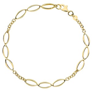 Złota bransoletka pr. 585 wykonana z efektownych, wydłużonych ogniw w formie wrzecion to elegancka propozycja dla kobiet, które lubią wyrazistą, ale klasyczną biżuterię. Starannie polerowana powierzchnia pięknie odbija światło, podkreślając szlachetny charakter złota. Lekka konstrukcja zapewnia wygodę noszenia przez cały dzień. Bransoletka świetnie prezentuje się zarówno solo, jak i w zestawieniu z innymi ozdobami. Zapięcie typu karabińczyk gwarantuje trwałość i bezpieczeństwo.