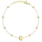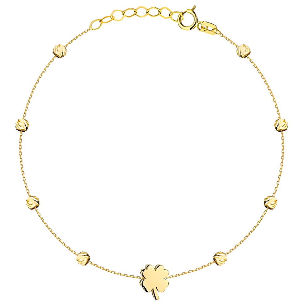 Złota pr.585 Bransoletka Trójwymiarowa Koniczynka i Diamentowane Kulki - Złoto 585