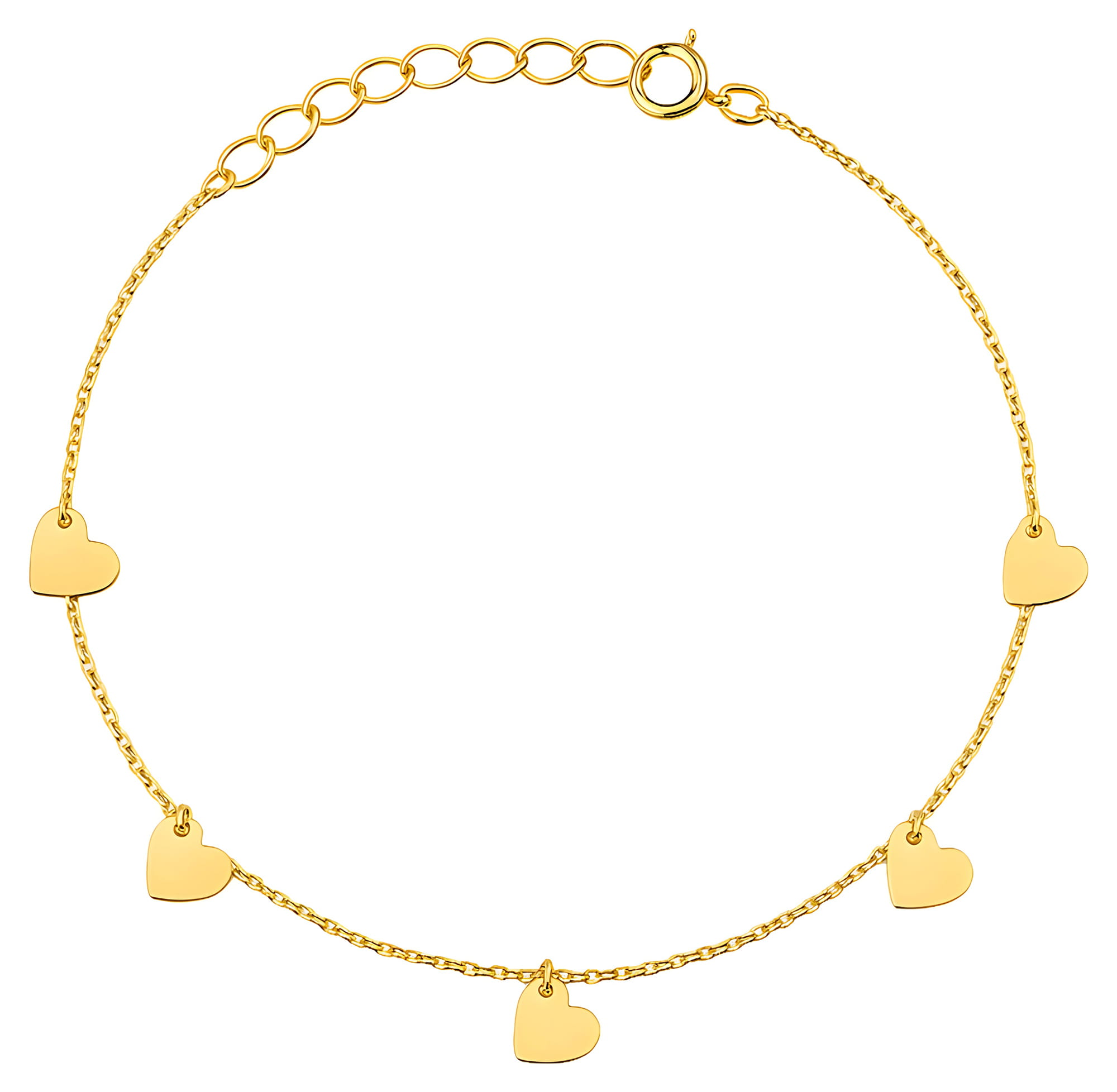 Złota Bransoletka na Nogę Pięć Pełnych Serduszek