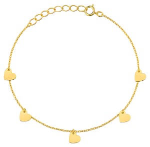 Złota pr.585 Bransoletka na Nogę Pięć Pełnych Serduszek - Złoto 585