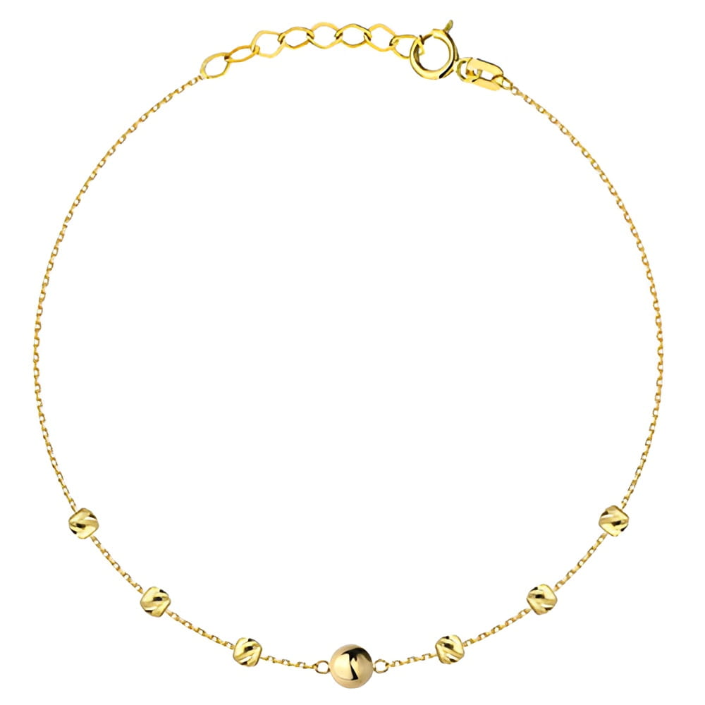 Złota pr.585 Bransoletka z Centralną Gładką Kulką i Diamentowanymi Kuleczkami - Złoto 585