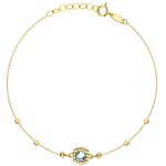 Złota pr.585 Bransoletka z Diamentowanymi Kulkami i Niebieską Cyrkonią - Złoto 585