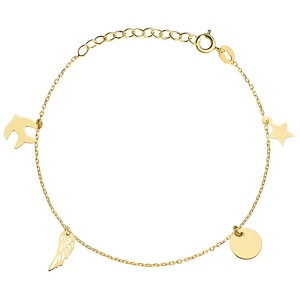 Złota pr.585 Bransoletka z Gwiazdką, Kółkiem, Skrzydełkiem i Jaskółką - Złoto 585