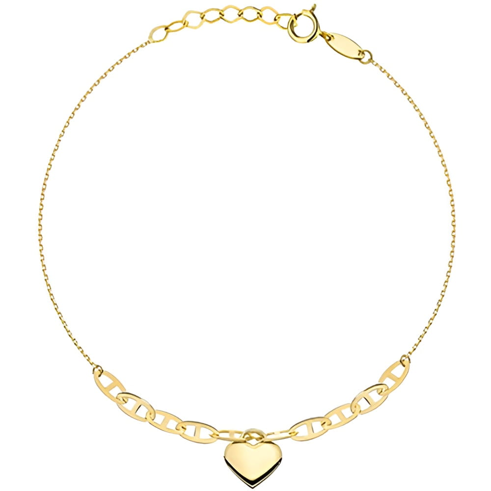 Złota pr.585 Bransoletka z Wiszącym Serduszkiem i Ogniwkami - Złoto 585
