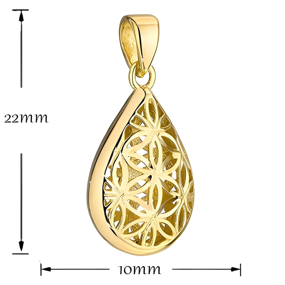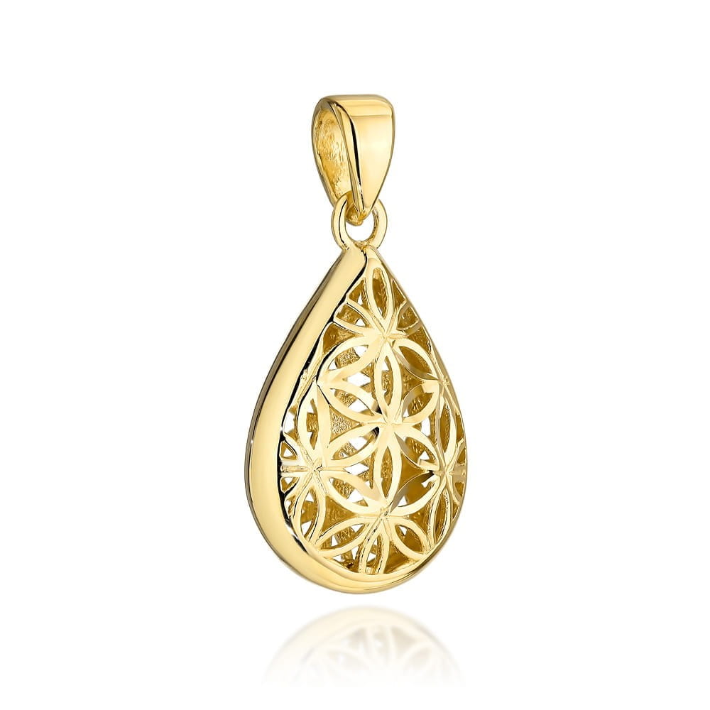 Złota Zawieszka Ażurowa Łezka z Kwiatami