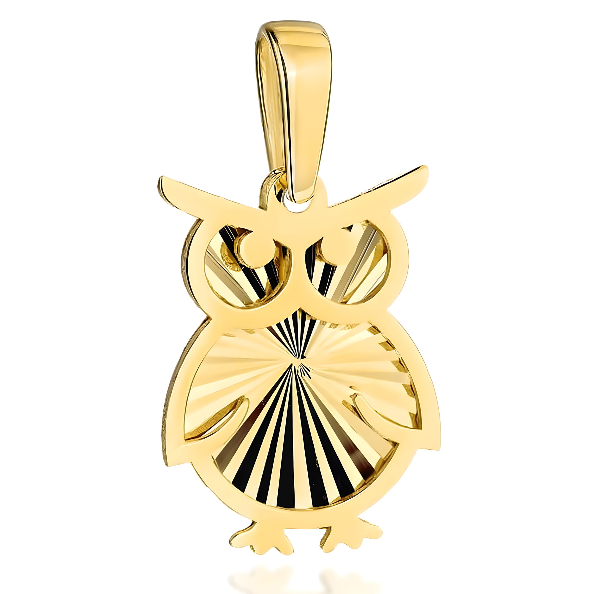 Odkryj unikalną elegancję i symbolikę dzięki naszej złotej zawieszce w kształcie sowy. Ta wyjątkowa zawieszka, wykonana z najwyższej jakości złota i diamentowana dla dodatkowego blasku, jest idealnym dodatkiem, który doda szyku każdej stylizacji.