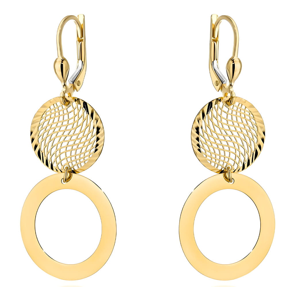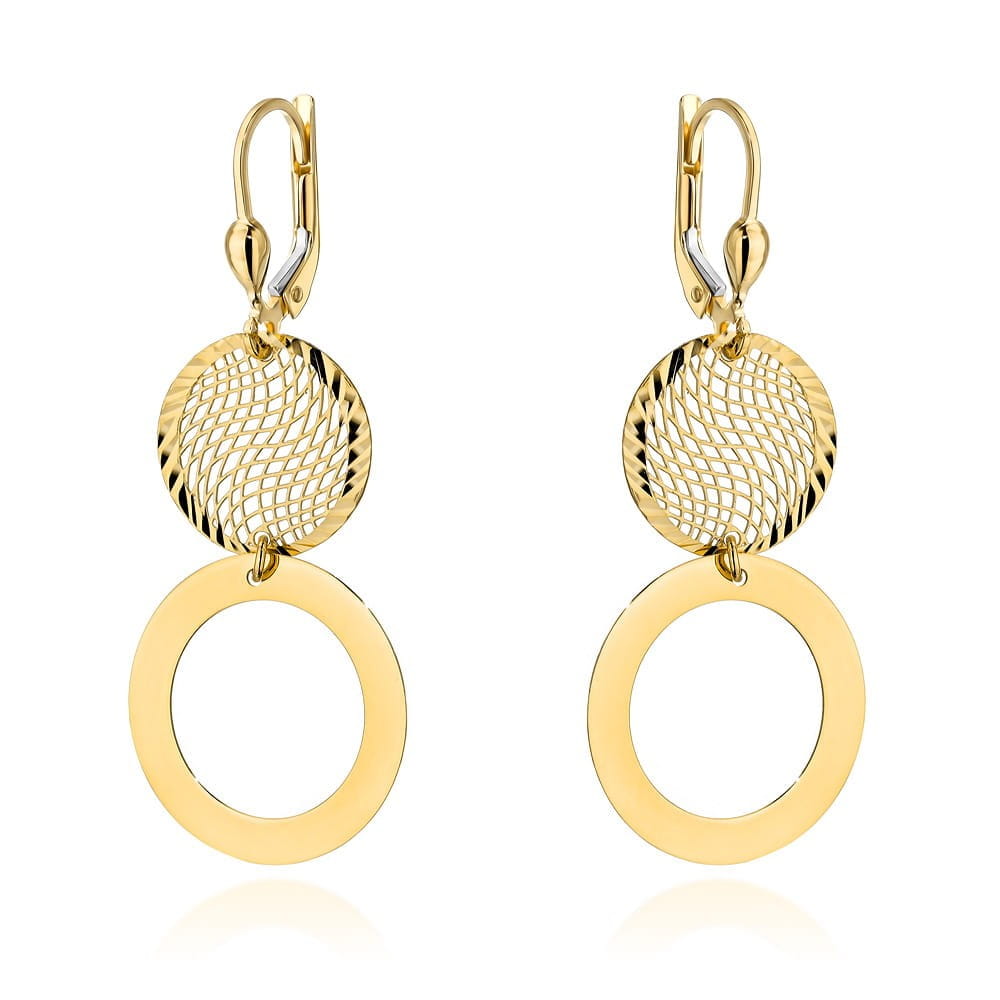 Złote Kolczyki pr. 585 Ażurowe Koło i Ring na Angielskim Zapięciu - Złoto 585