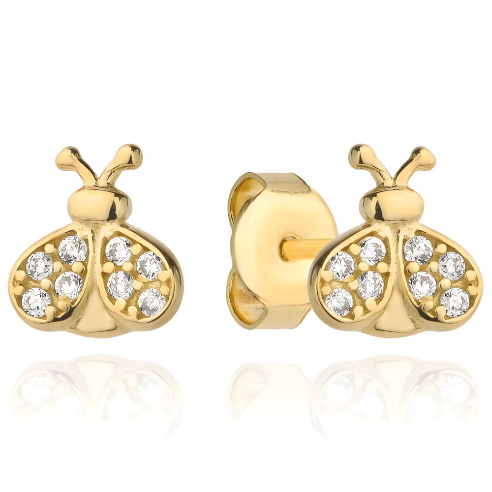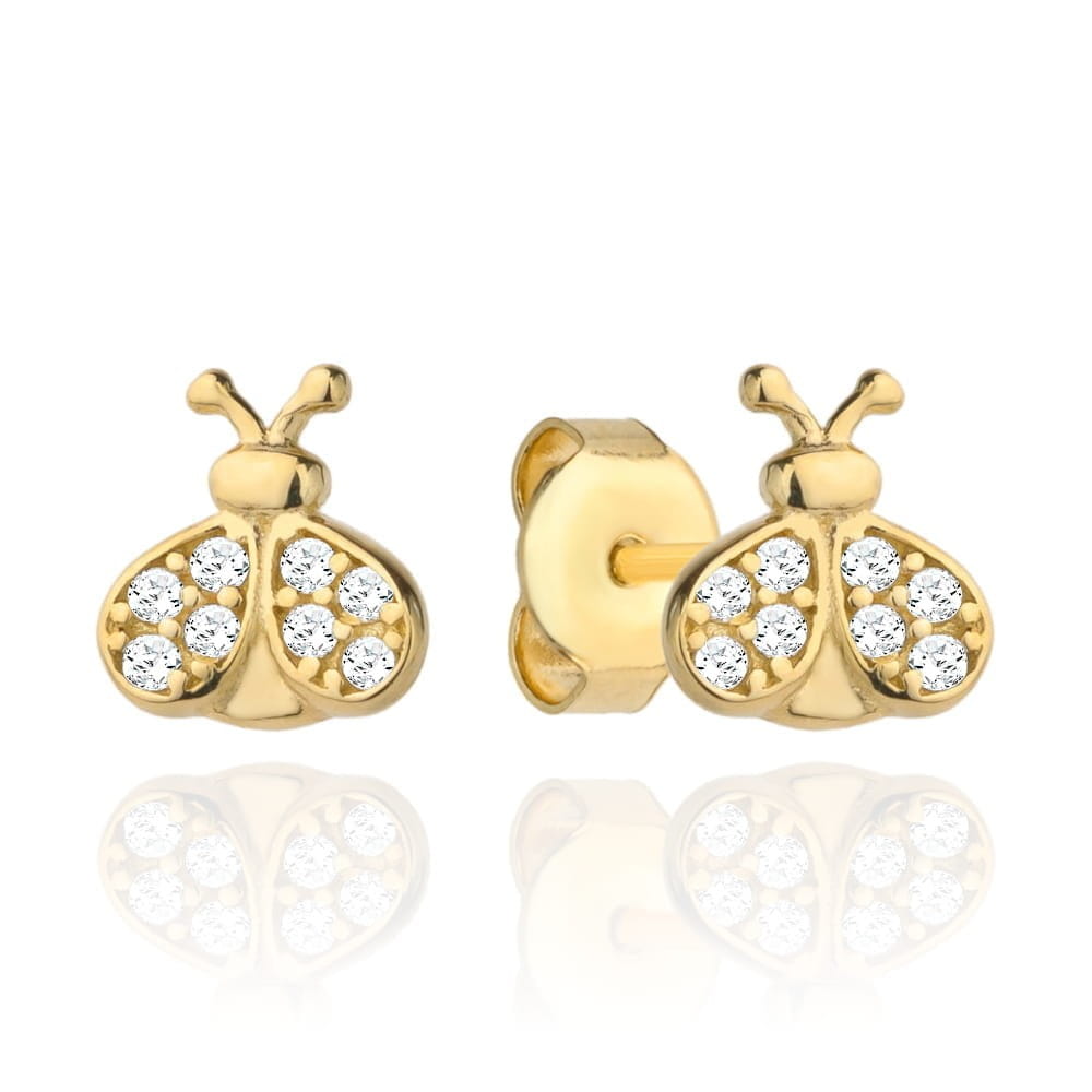Złote Kolczyki Biedronki z Cyrkoniami – Uroczy Dodatek Pełen Blasku