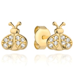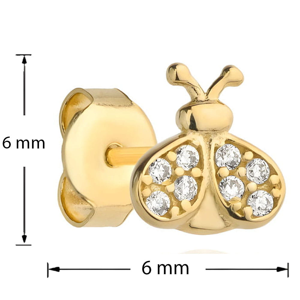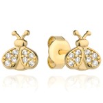 Złote Kolczyki pr. 585 Biedronka Wysadzana Cyrkoniami Złoto 585