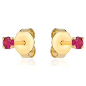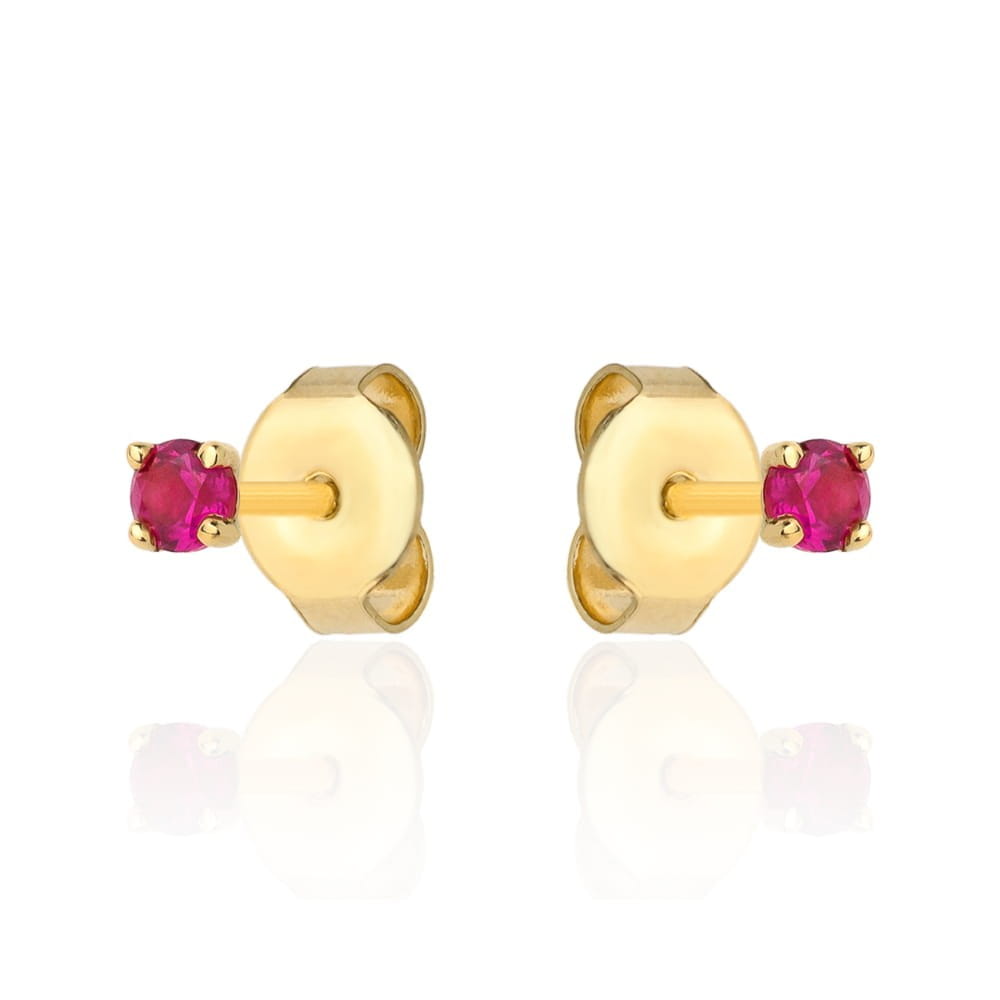 Złote Kolczyki na Sztyfcie z Rubinową Cyrkonią – Klasyka z Odrobiną Pasji