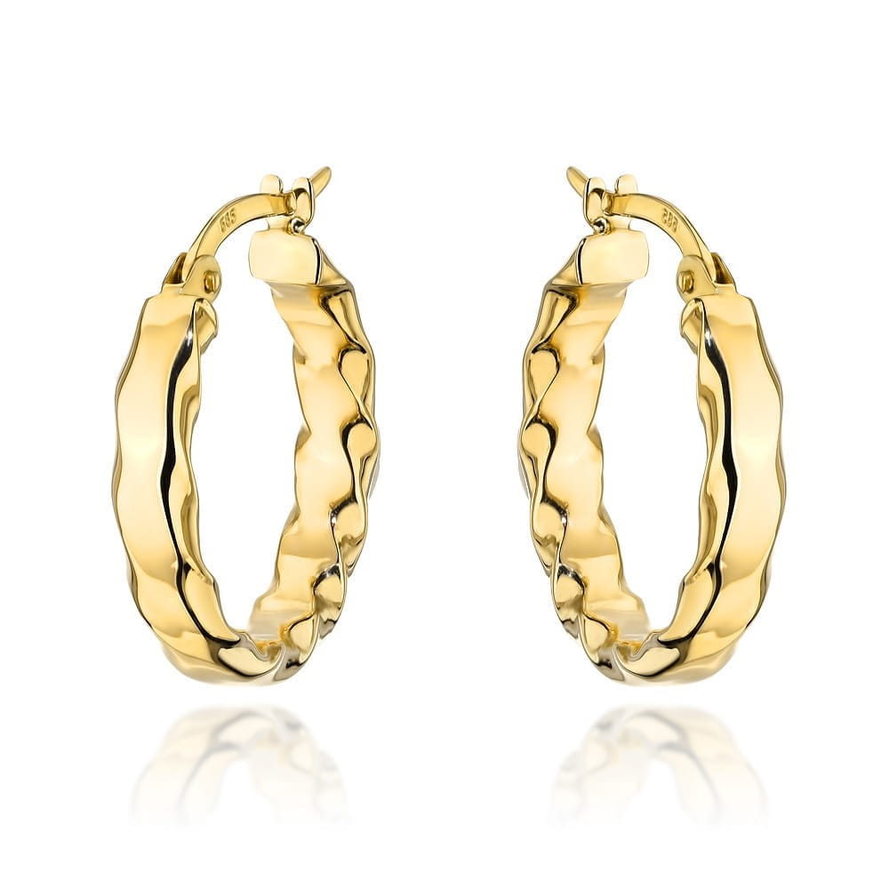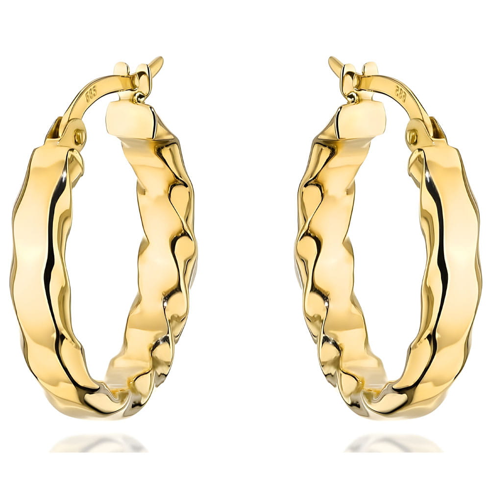 Złote Kolczyki Koła ze Skręconym Wzorem - Złoto 585