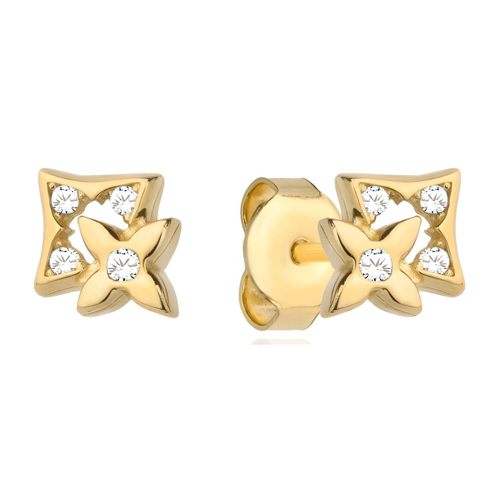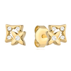Ożyw swoją kolekcję biżuterii dzięki złotym kolczykom w kształcie kwiatków osadzonych w kwadracie. Ich subtelny wygląd został wzbogacony o lśniące cyrkonie klasy AAA+, które dodają blasku i podkreślają unikalny styl.